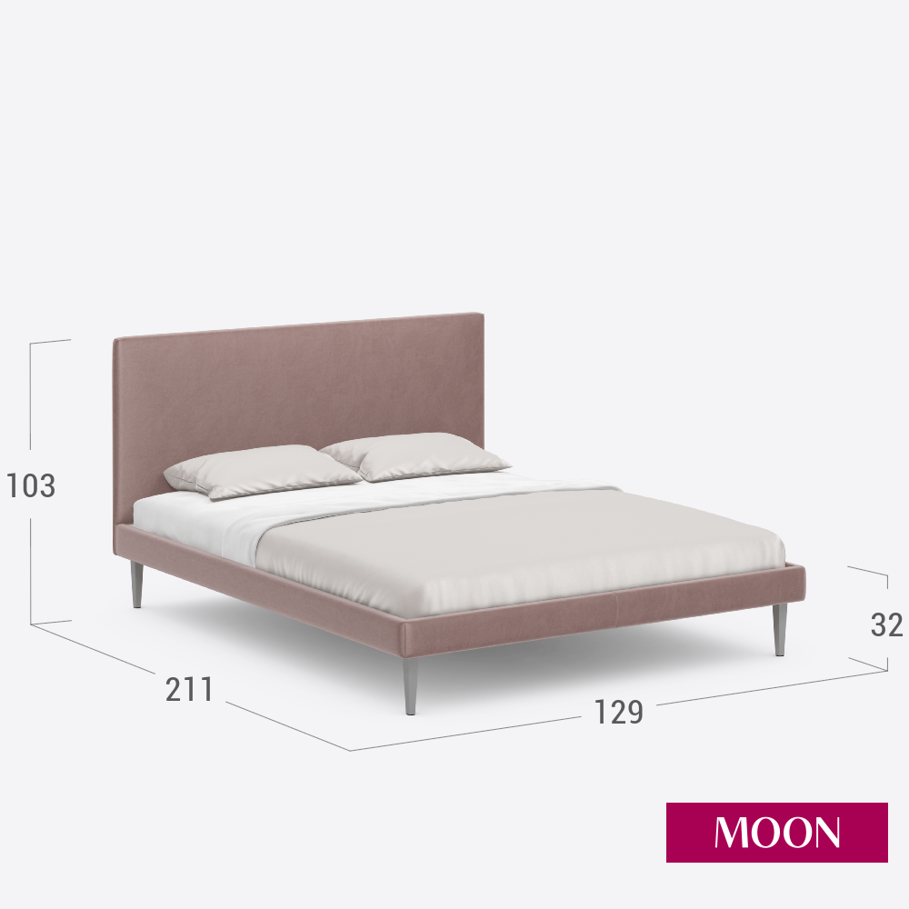 Кровать двуспальная без подъемного механизма на ножках, MOON FAMILY 1256, размер 140х200 см, велюр розовый. Ортопедическое основание в комплекте 21 100 ₽