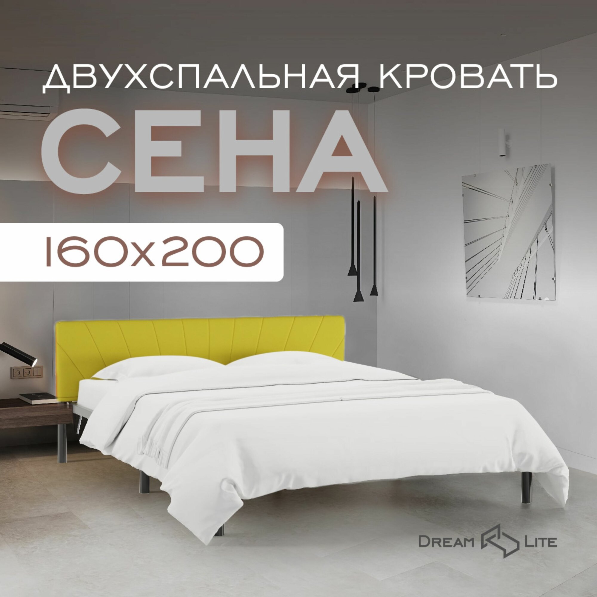 10 цен на Кровать "Сена блэк", 160х200 см, велюр Velutto желтый, черный каркас, DreamLite