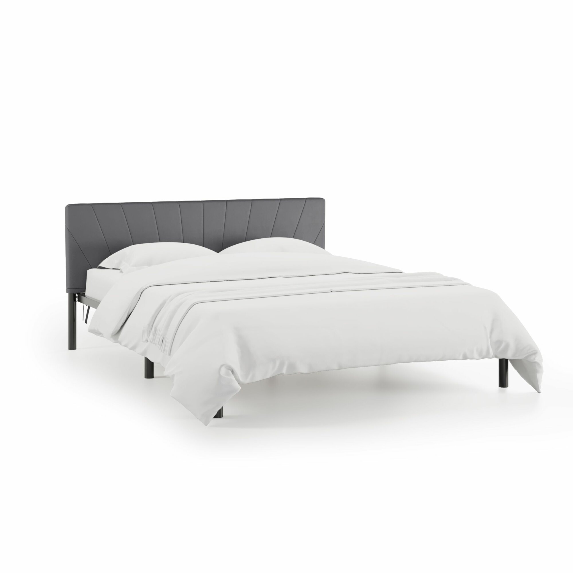 10 цен на Кровать "Сена блэк", 160х200 см, велюр Velutto темно-серый, черный каркас, DreamLite