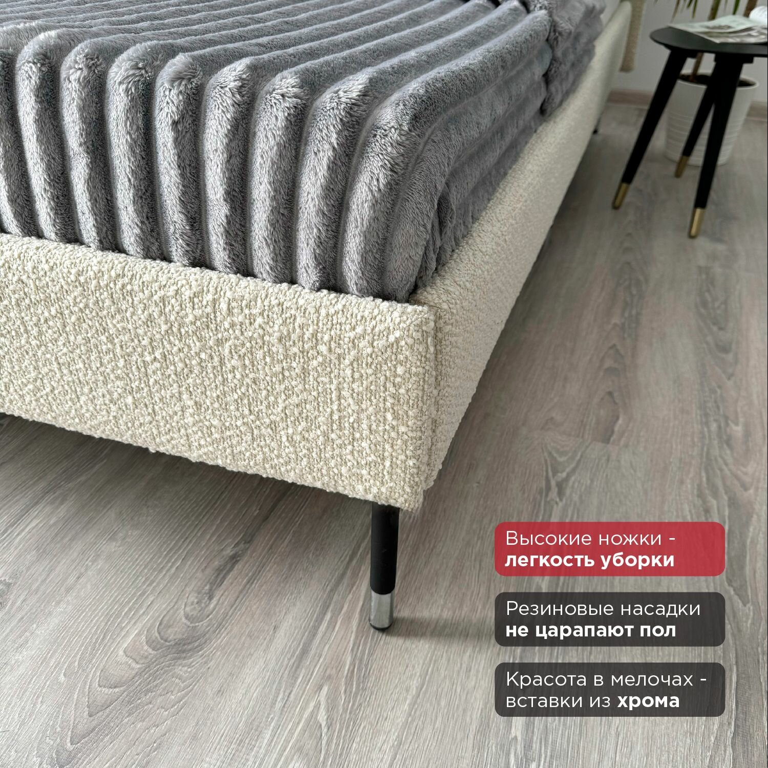Кровать Redsofa Сити Букле Латте / ножки хром 180х200 с ортопедическим основанием (Мебельный гарнитур бытового назначения) 29 750 ₽