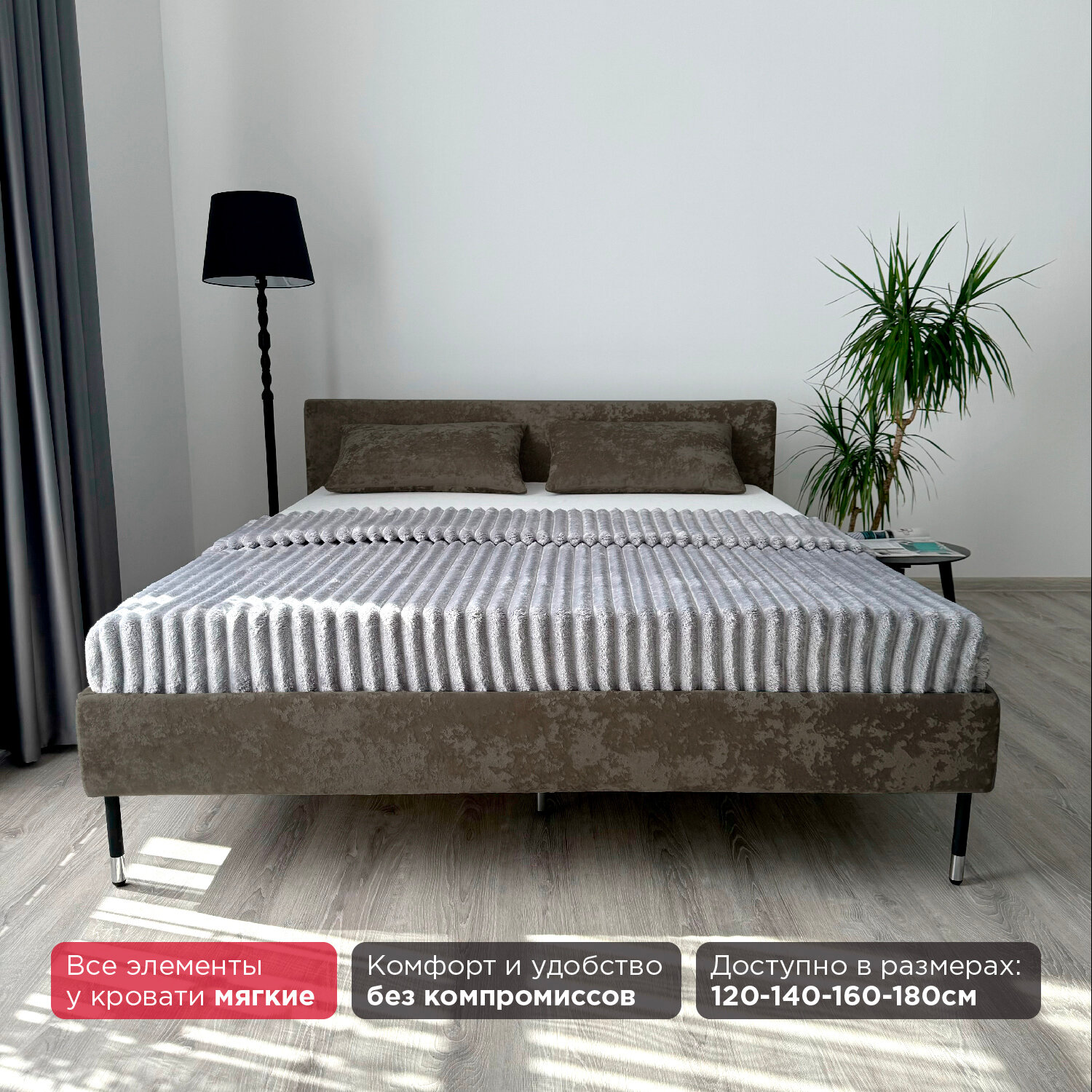 Кровать Redsofa Сити Букле Латте / ножки хром 160х200 с ортопедическим основанием (Мебельный гарнитур бытового назначения) 27 890 ₽