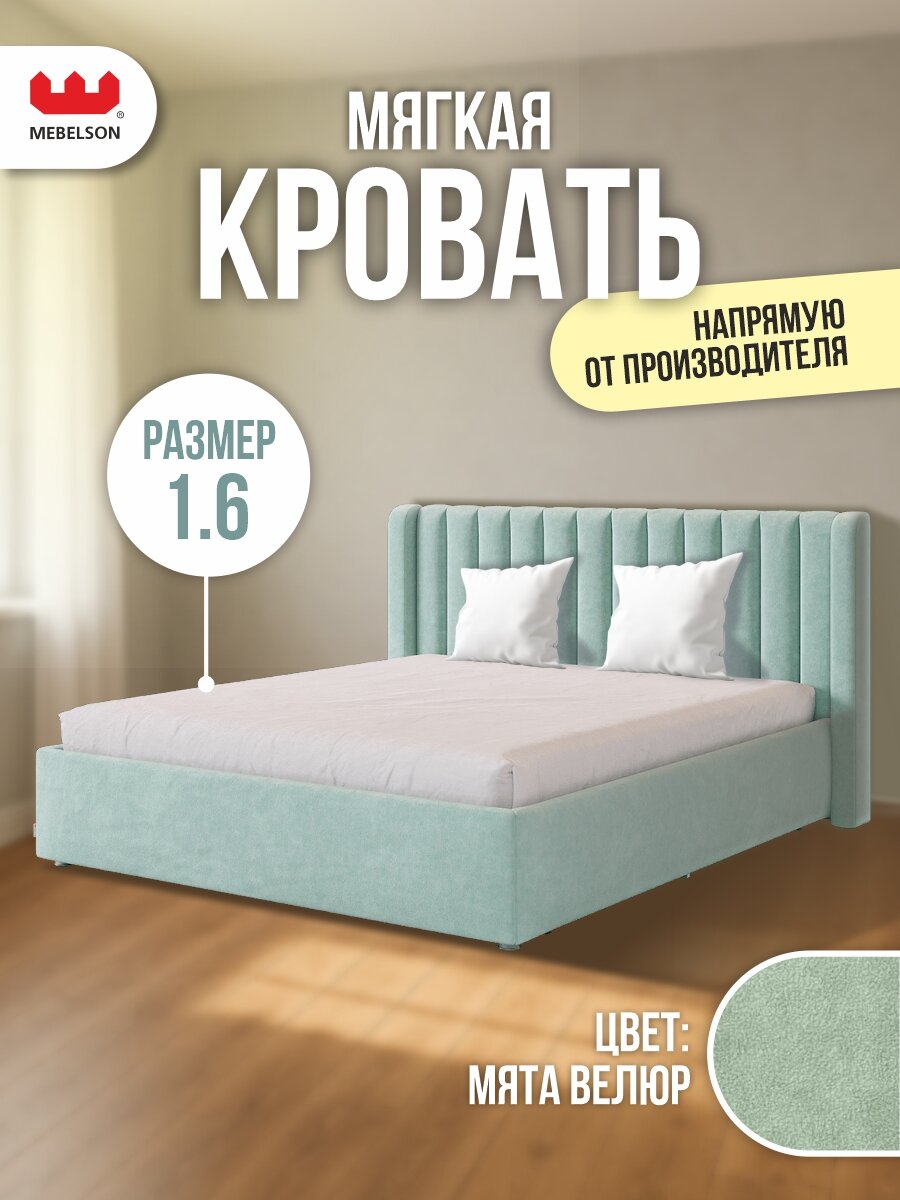 Отзывы на Кровать двуспальная "Ева" с основанием на опорах, 160х200 см, велюр Мята, Mebelson