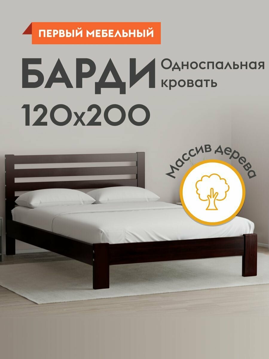 Кровать односпальная Барди 120х200 см деревянная, с анатомическим основанием, Массив сосны, Орех темный информация: