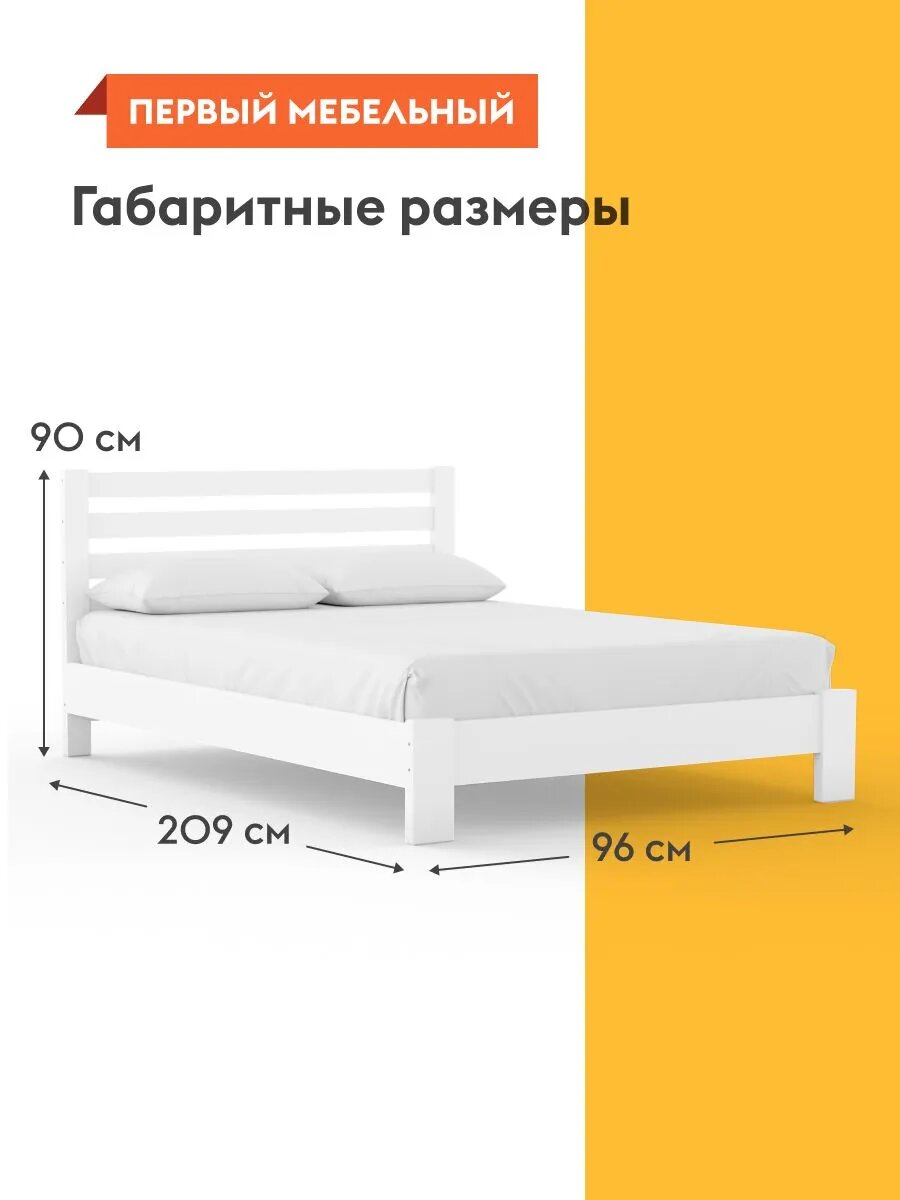 10 цен на Кровать односпальная Барди 90х200 см деревянная, с анатомическим основанием, Массив сосны, Белый античный