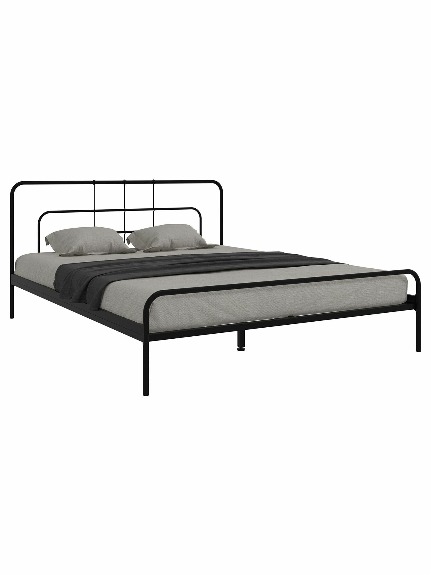 Кровать двуспальная Майра 140х200 см, с анатомическим основанием, без подъемного механизма, с изножьем, Черный, металл 16 270 ₽