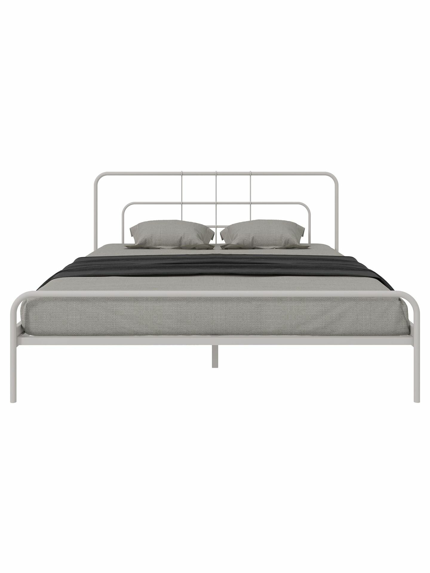 10 цен на Кровать двуспальная Майра 160х200 см, с анатомическим основанием, без подъемного механизма, с изножьем, Кремово-белый, металл