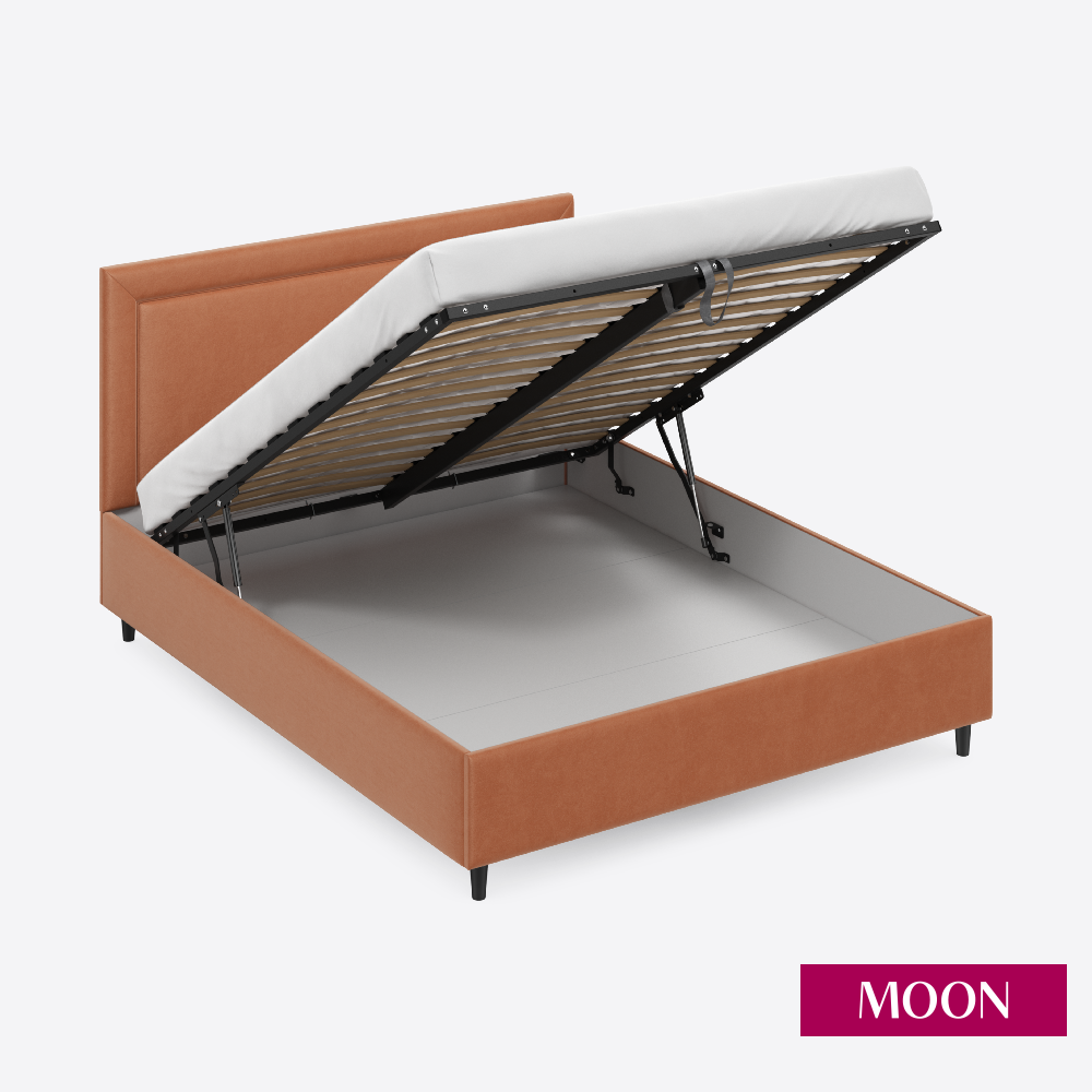 Кровать двуспальная с подъемным механизмом на ножках, MOON FAMILY 1258, размер 140х200 см, велюр оранжевый. Ортопедическое основание в комплекте информация: