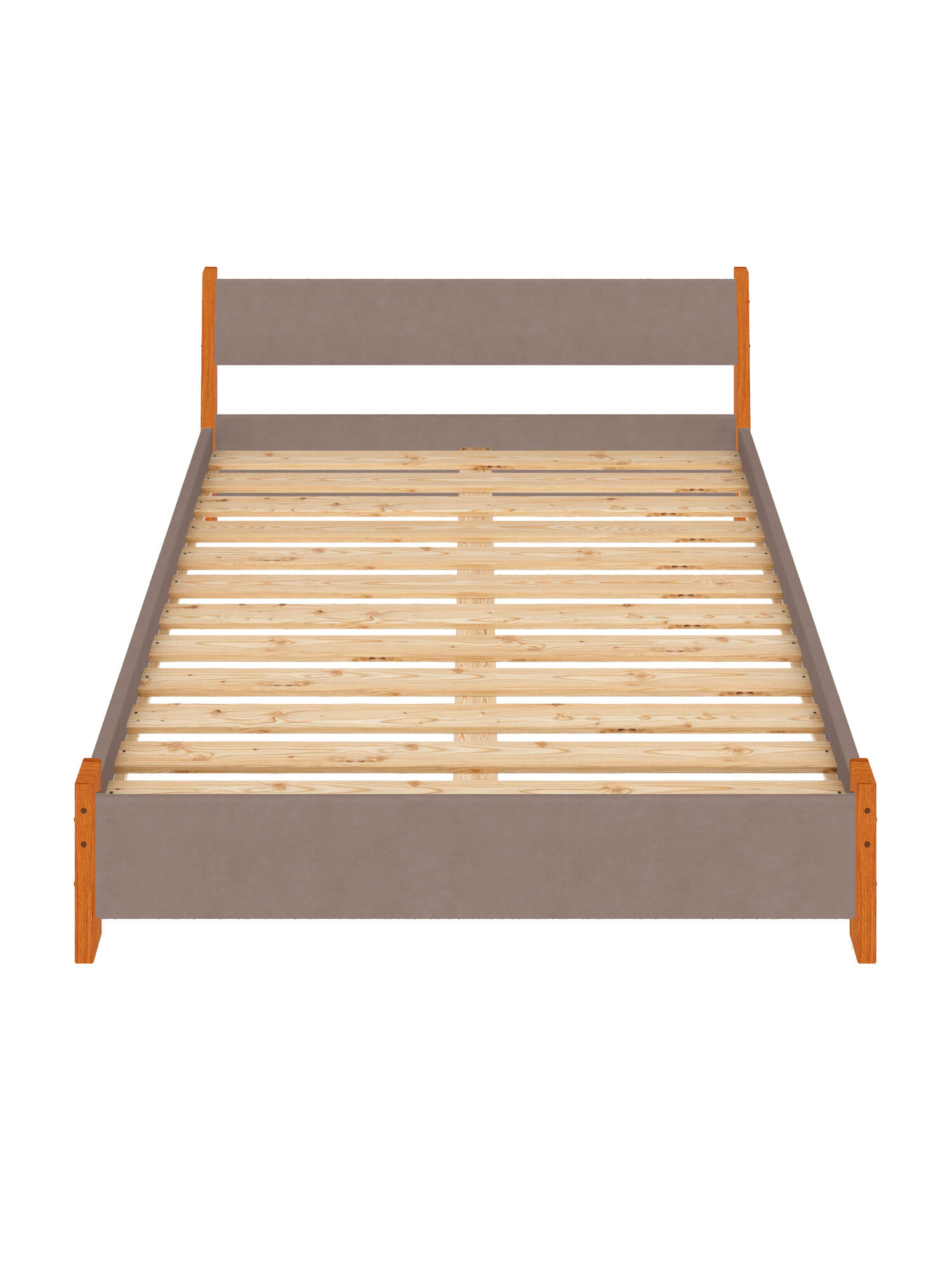 Кровать двуспальная Мишка из массива сосны, 120х200 см, с реечным основанием и темно-серой мягкой обивкой, ножки лакированные 18 632 ₽