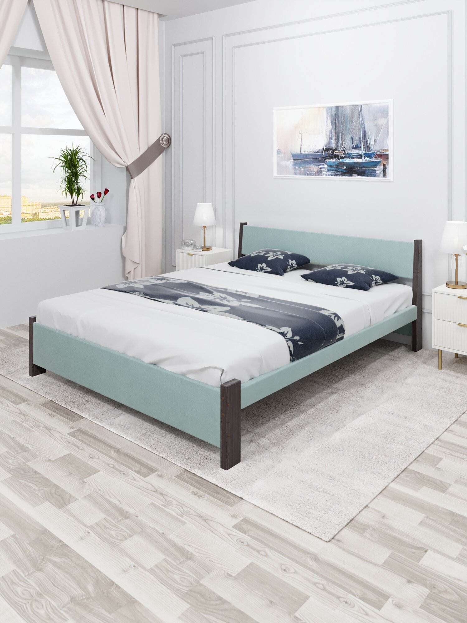 Кровать двуспальная Мишка из массива сосны, 160х200 см, с реечным основанием и мягкой обивкой цвета Тиффани, цвет ножек венге 19 705 ₽