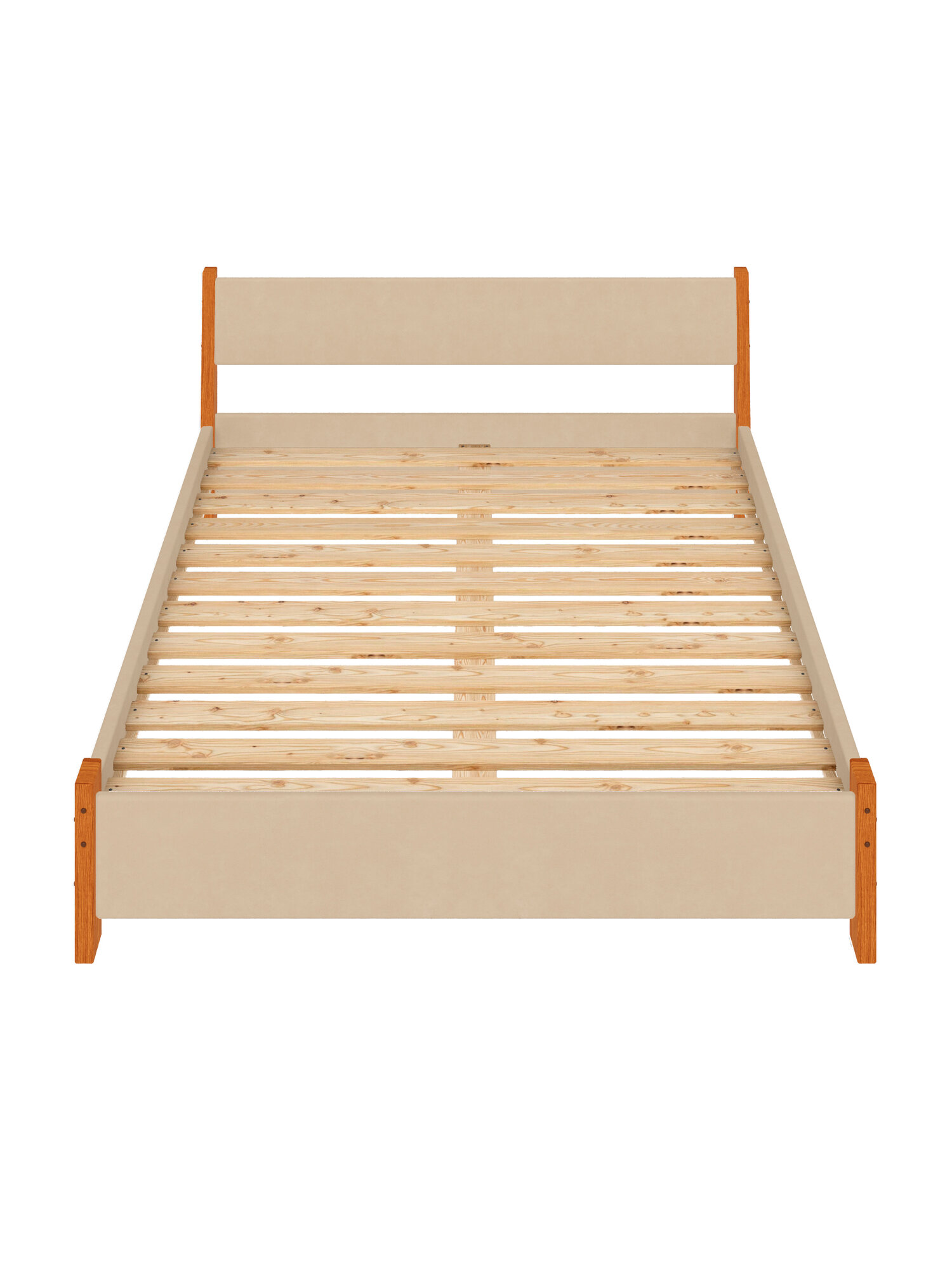 Кровать двуспальная Мишка из массива сосны, 140х200 см, с реечным основанием и бежевой мягкой обивкой, цвет ножек ольха информация: