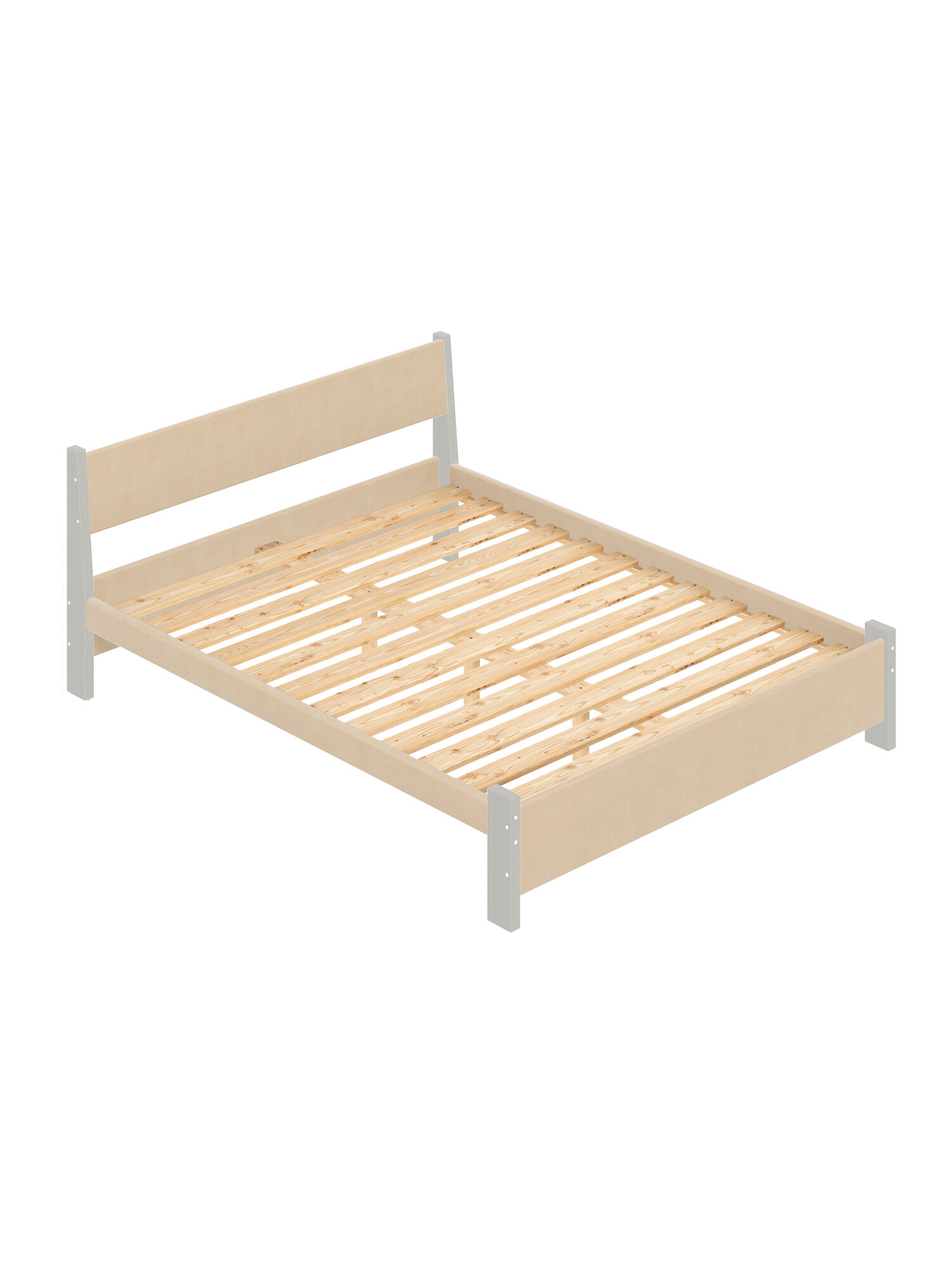 Кровать двуспальная Мишка из массива сосны, 140х200 см, с реечным основанием и бежевой мягкой обивкой, цвет ножек ваниль 19 169 ₽