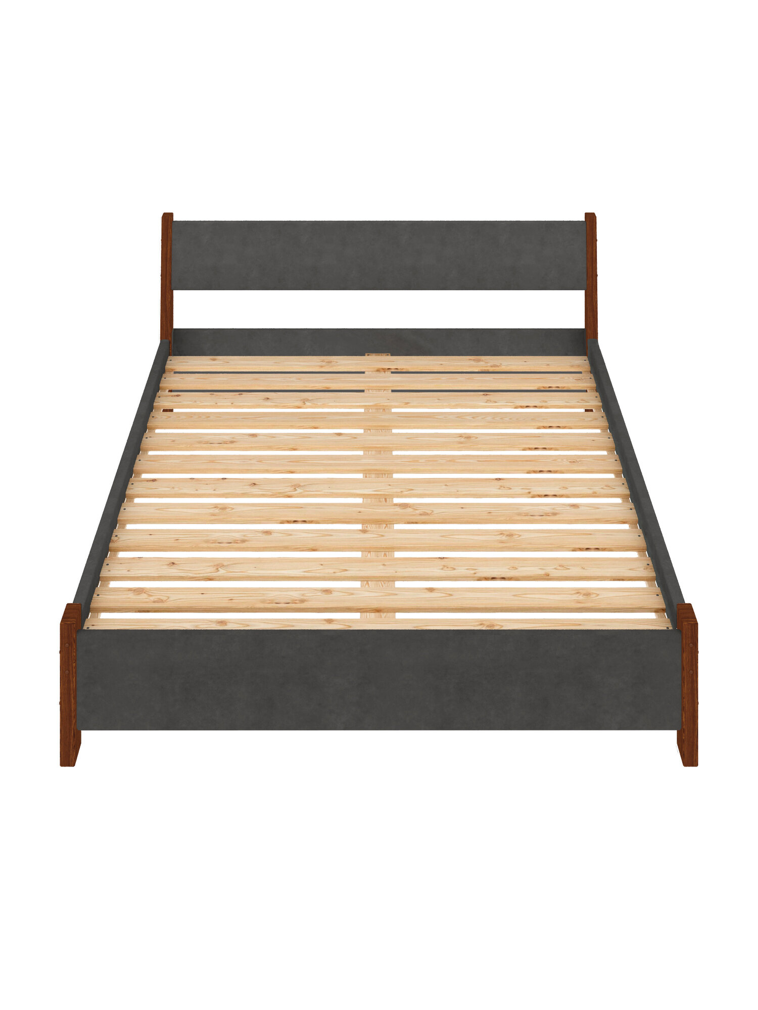 Кровать двуспальная Мишка из массива сосны, 120х200 см, с реечным основанием и темно-серой мягкой обивкой, цвет ножек темный дуб 18 632 ₽