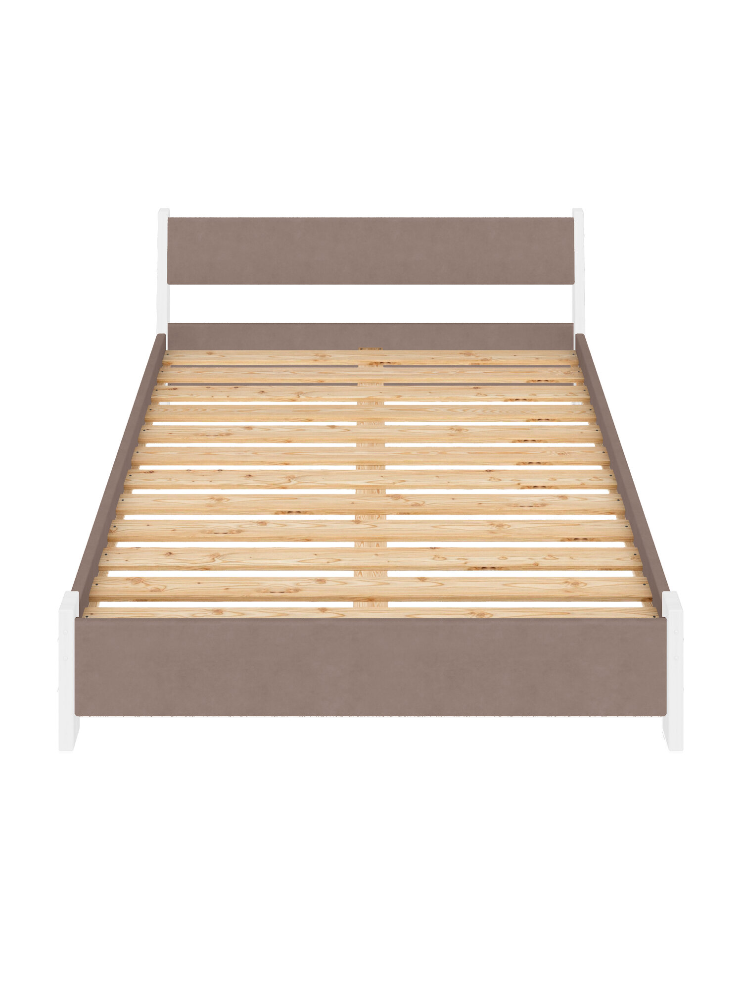 Кровать двуспальная Мишка из массива сосны, 140х200 см, с реечным основанием и коричневой мягкой обивкой, цвет ножек белый 19 169 ₽