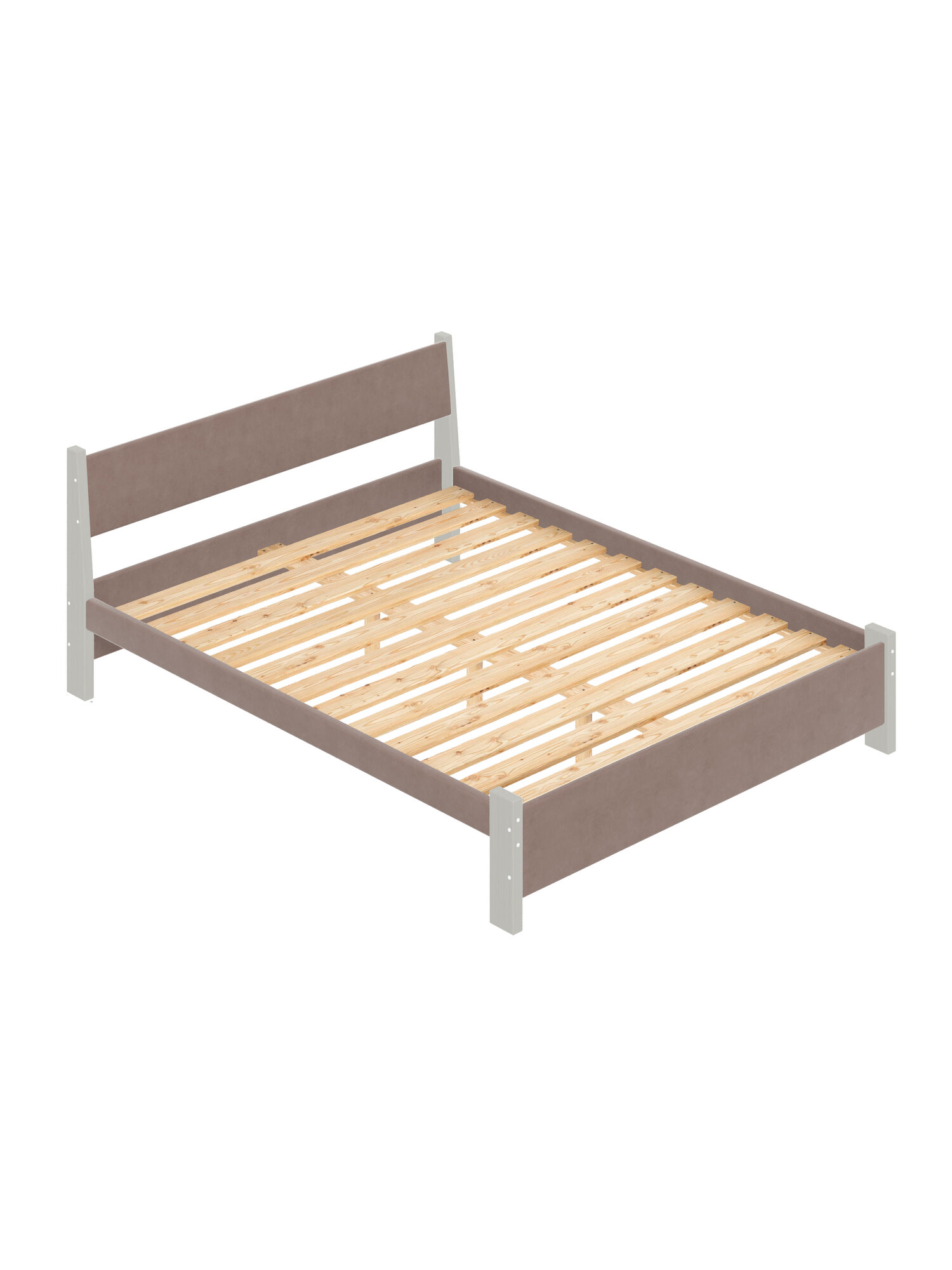Кровать двуспальная Мишка из массива сосны, 140х200 см, с реечным основанием и мягкой обивкой цвета Мокко Мусс, цвет ножек ваниль 19 169 ₽
