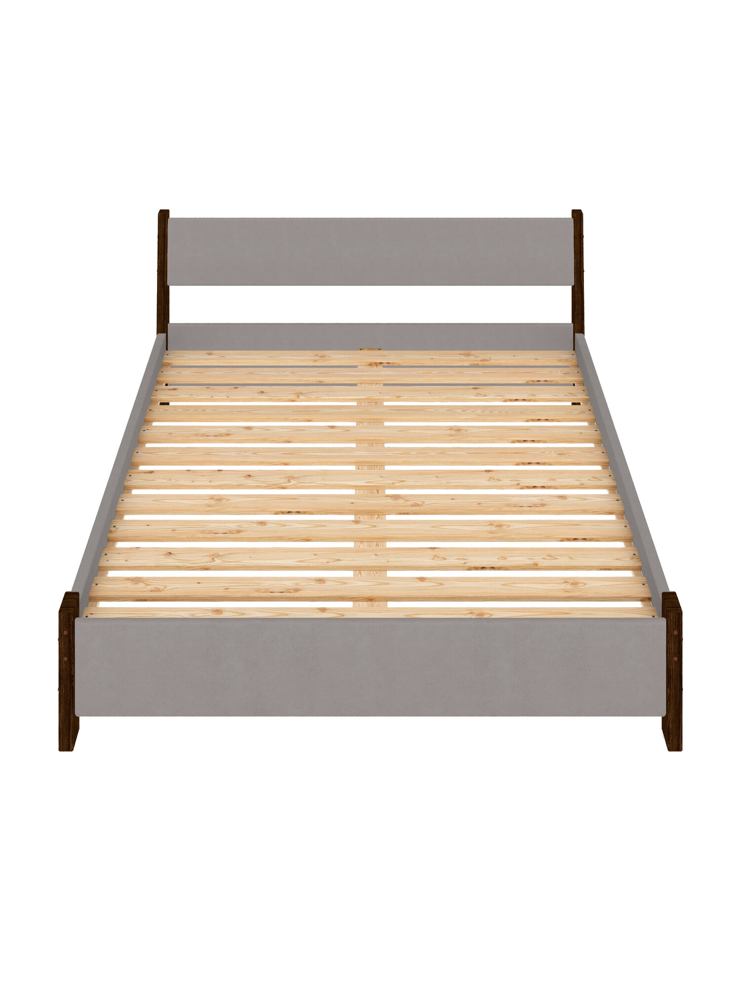 Кровать двуспальная Мишка из массива сосны, 120х200 см, с реечным основанием и светло-серой мягкой обивкой, цвет ножек темный дуб 18 632 ₽