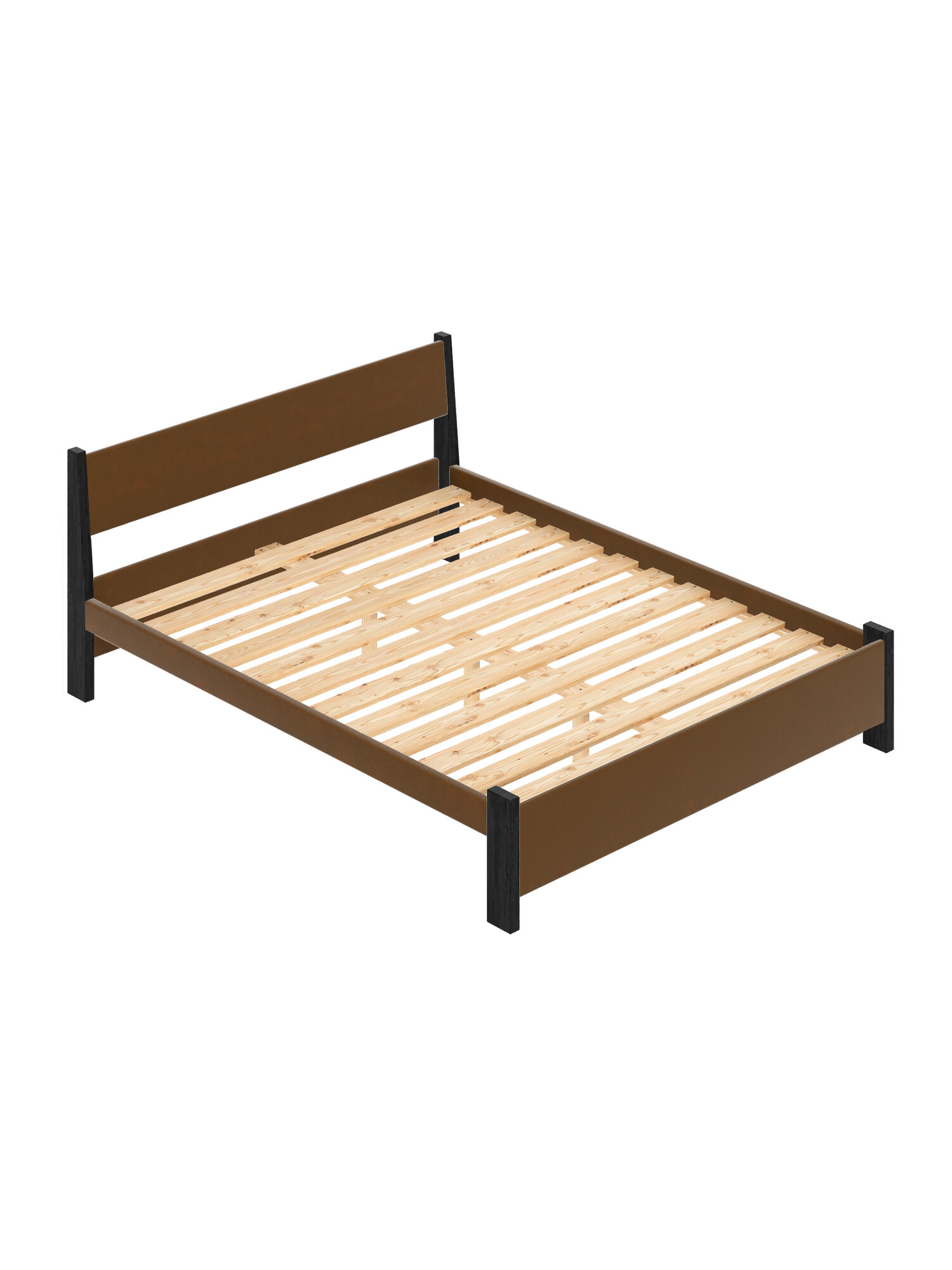 Кровать двуспальная Мишка из массива сосны, 140х200 см, с реечным основанием и коричневой мягкой обивкой, цвет ножек черный оникс 19 169 ₽