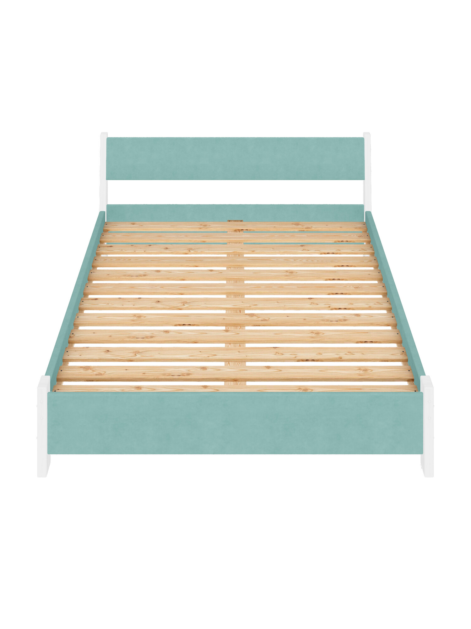 Кровать двуспальная Мишка из массива сосны, 120х200 см, с реечным основанием и мягкой обивкой цвета Тиффани, цвет ножек белый 18 632 ₽