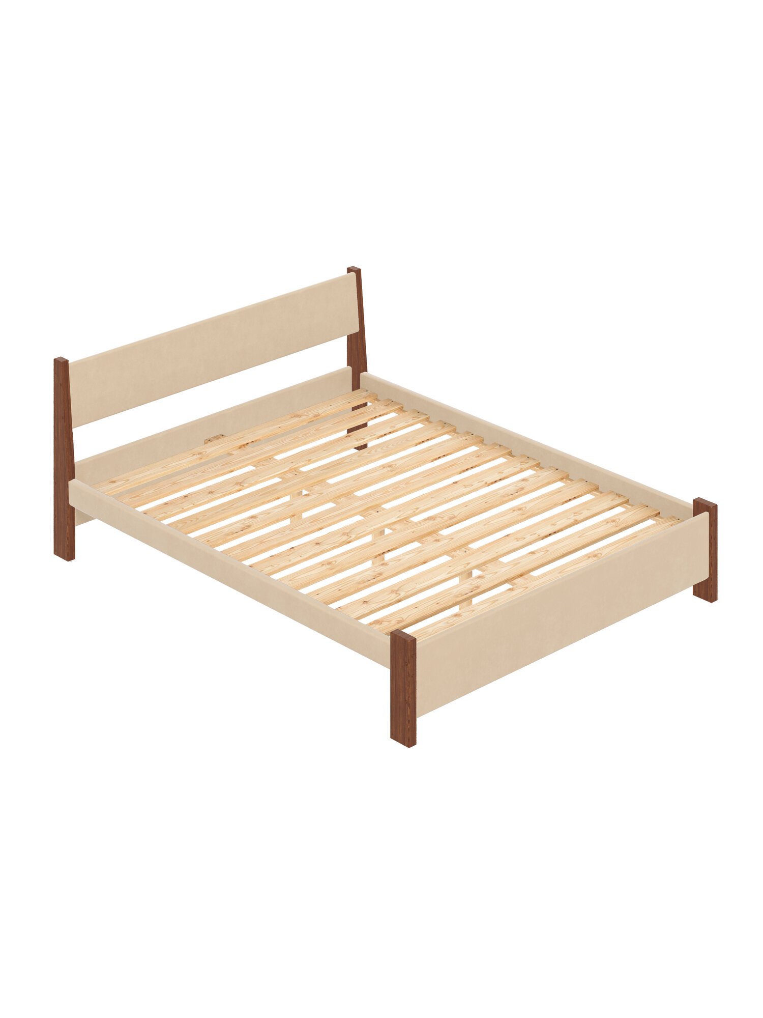 Кровать двуспальная Мишка из массива сосны, 160х200 см, с реечным основанием и бежевой мягкой обивкой, цвет ножек ольха 19 705 ₽