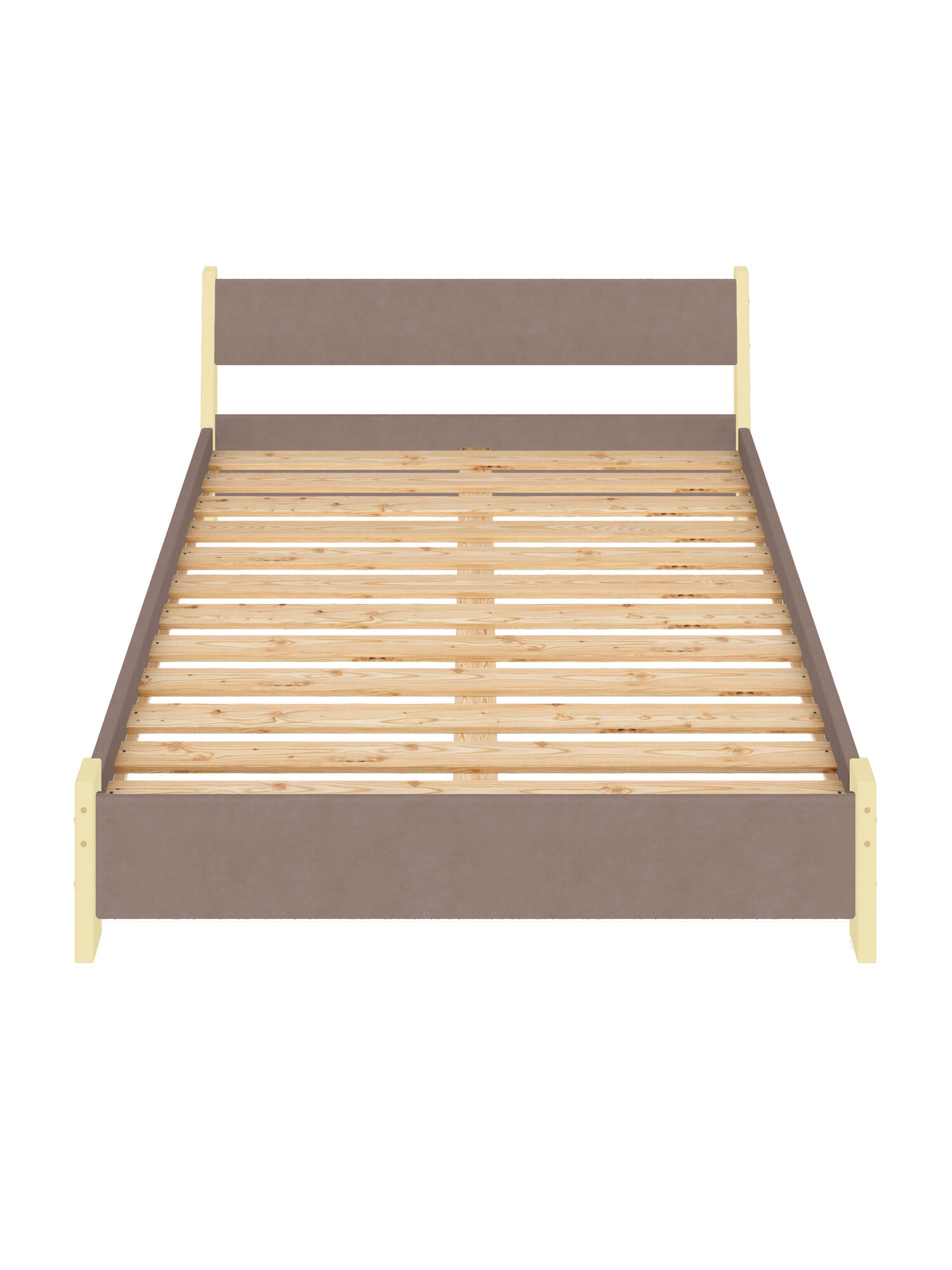 Кровать двуспальная Мишка из массива сосны, 120х200 см, с реечным основанием и мягкой обивкой цвета Мокко Мусс, ножки лакированные 18 632 ₽