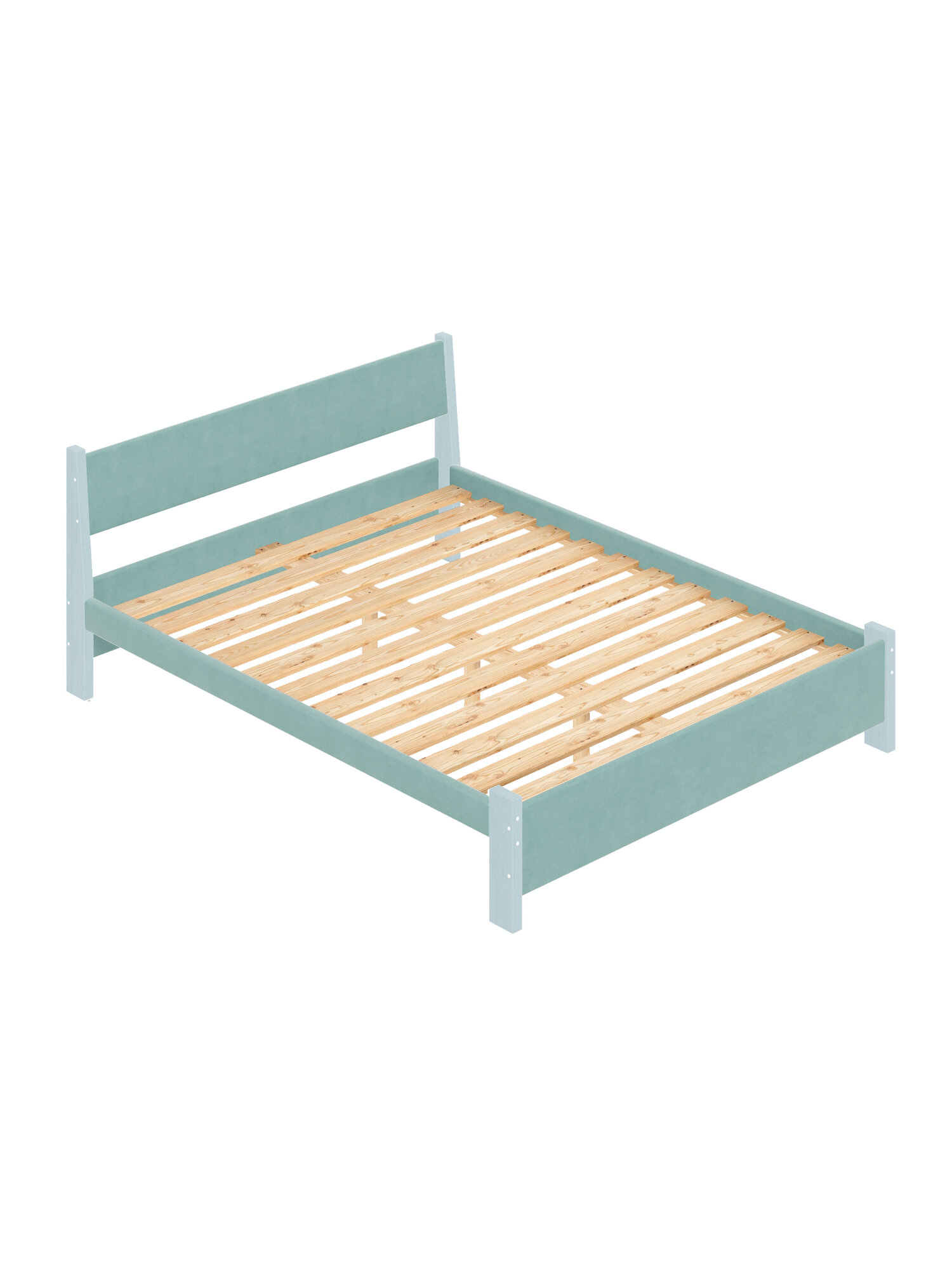 Кровать двуспальная Мишка из массива сосны, 120х200 см, с реечным основанием и мягкой обивкой цвета Тиффани, цвет ножек ольха 18 632 ₽