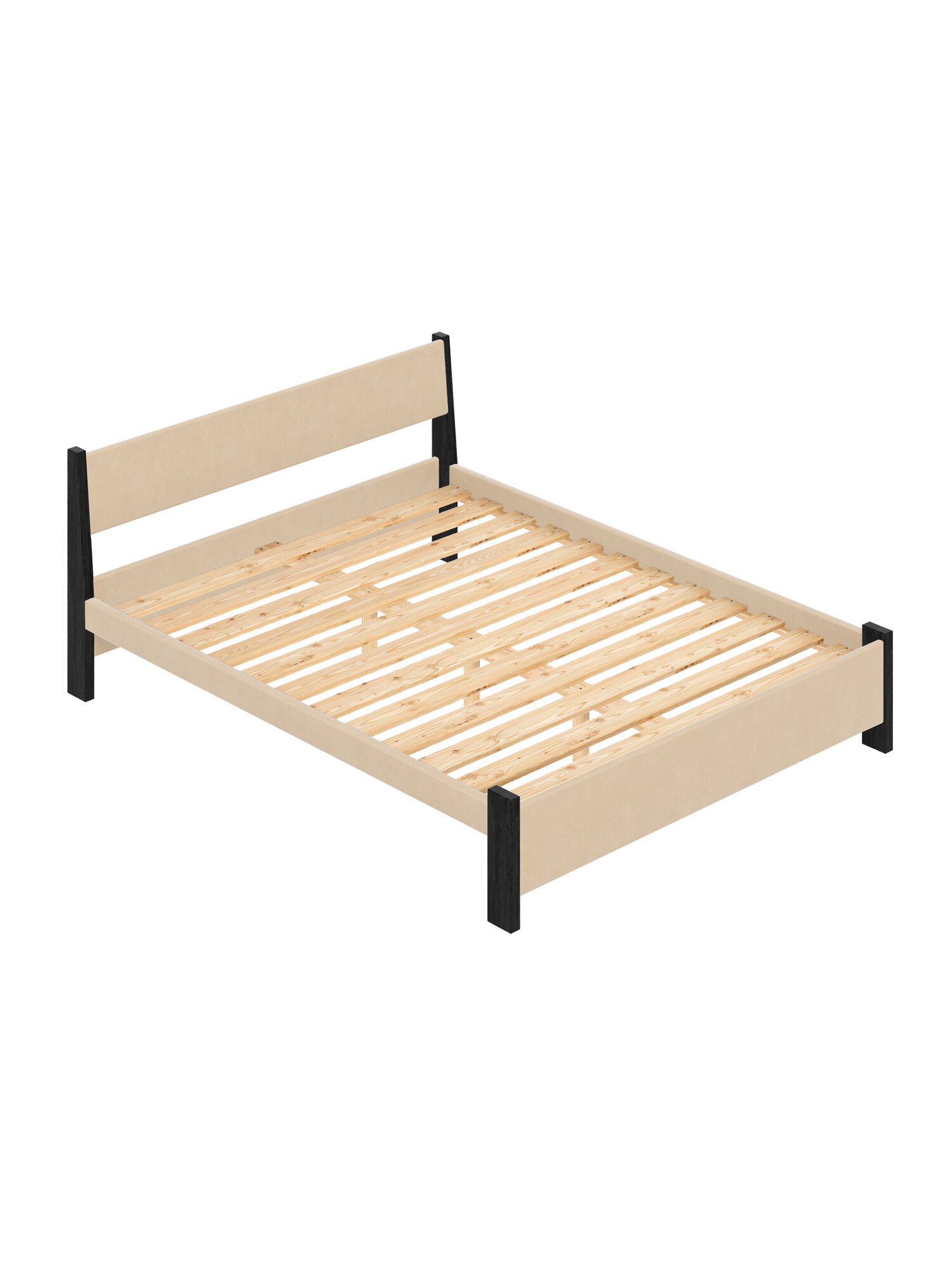 Кровать двуспальная Мишка из массива сосны, 160х200 см, с реечным основанием и бежевой мягкой обивкой, цвет ножек черный оникс 19 705 ₽