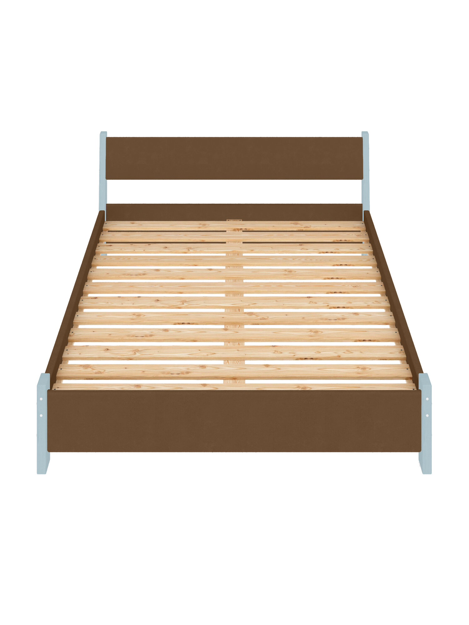 Кровать двуспальная Мишка из массива сосны, 140х200 см, с реечным основанием и коричневой мягкой обивкой, цвет ножек голубой 19 169 ₽