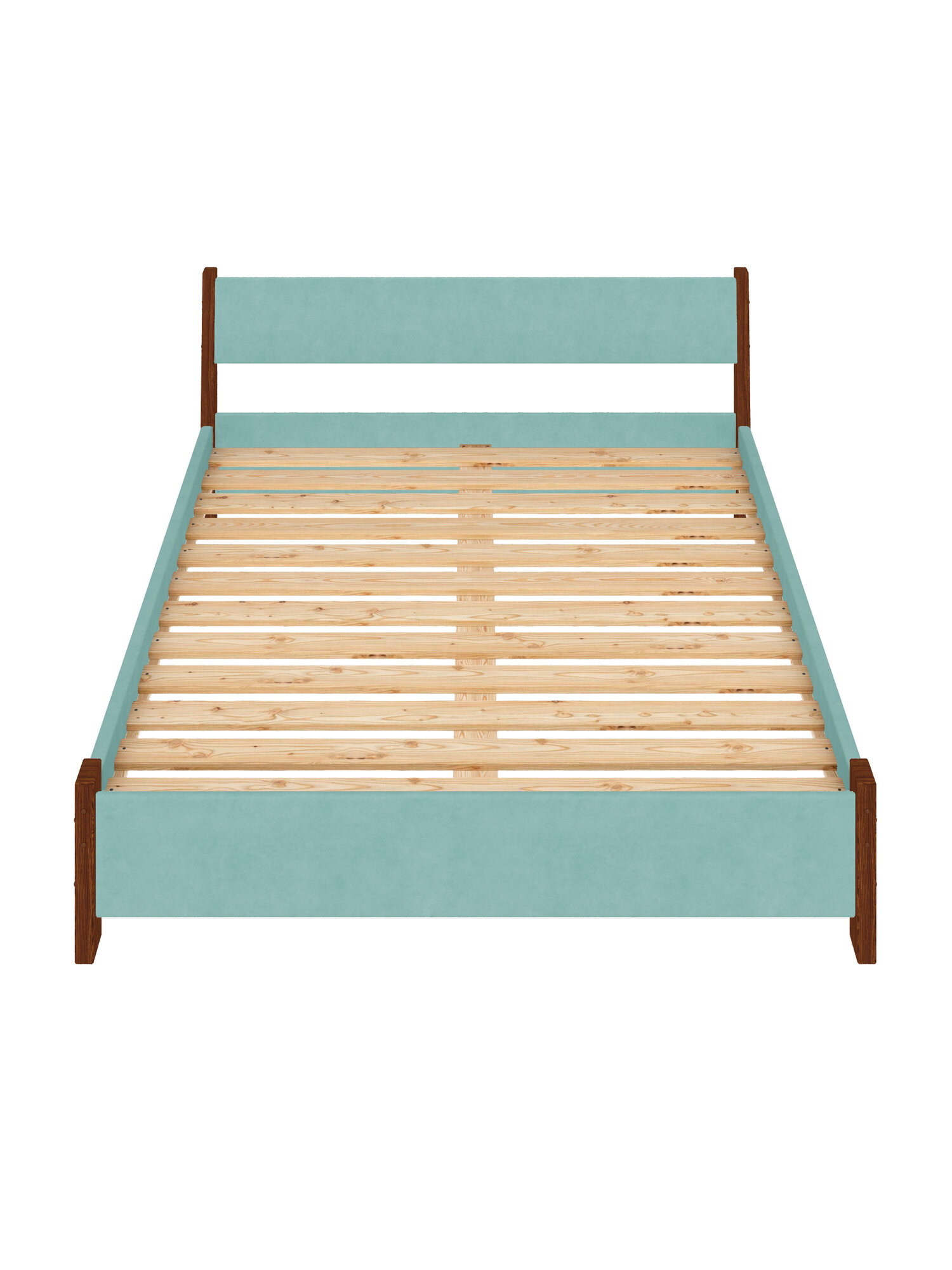 Кровать двуспальная Мишка из массива сосны, 120х200 см, с реечным основанием и мягкой обивкой цвета Тиффани, цвет ножек ольха 18 632 ₽