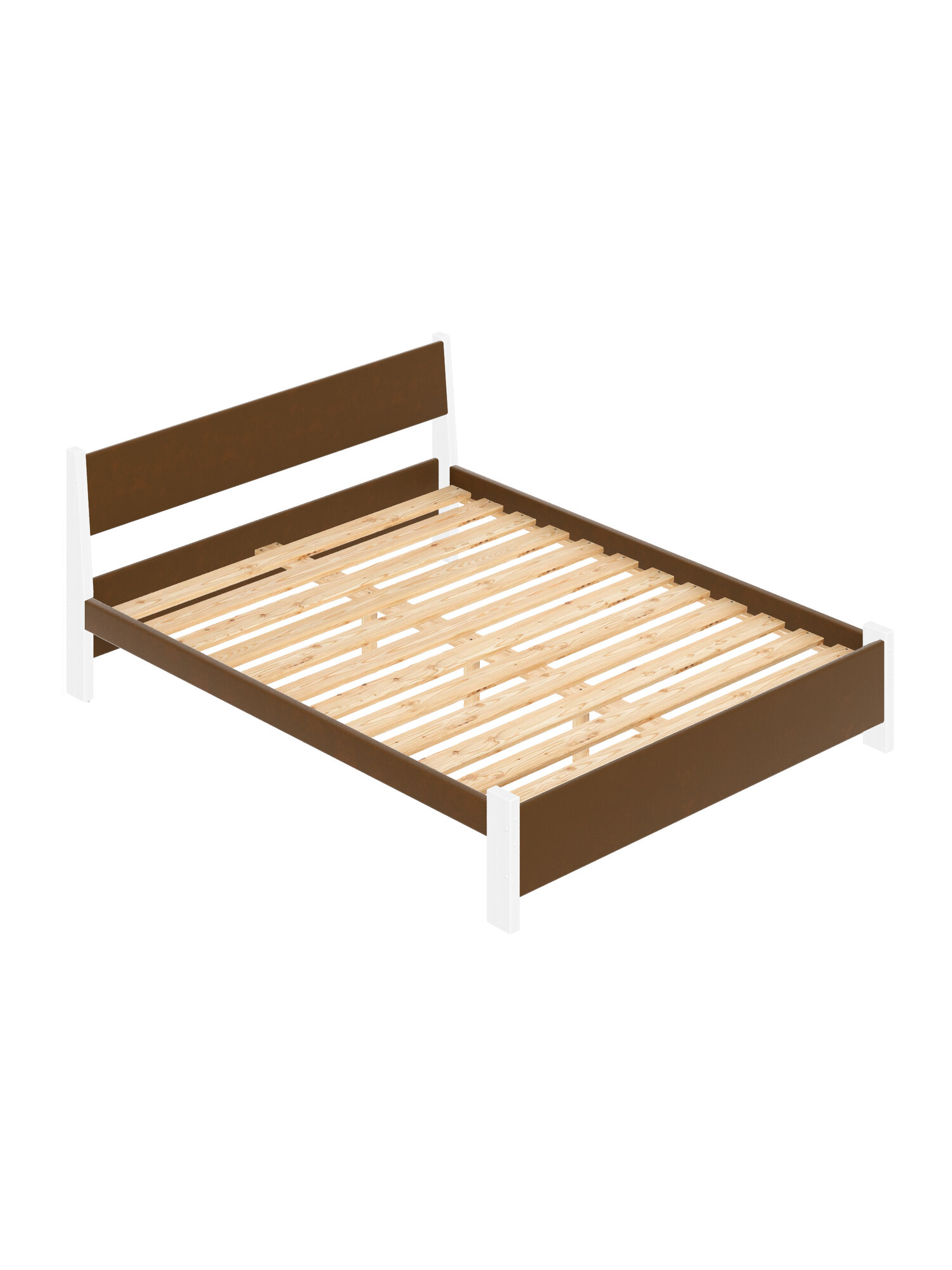 Кровать двуспальная Мишка из массива сосны, 140х200 см, с реечным основанием и коричневой мягкой обивкой, цвет ножек белый 19 169 ₽