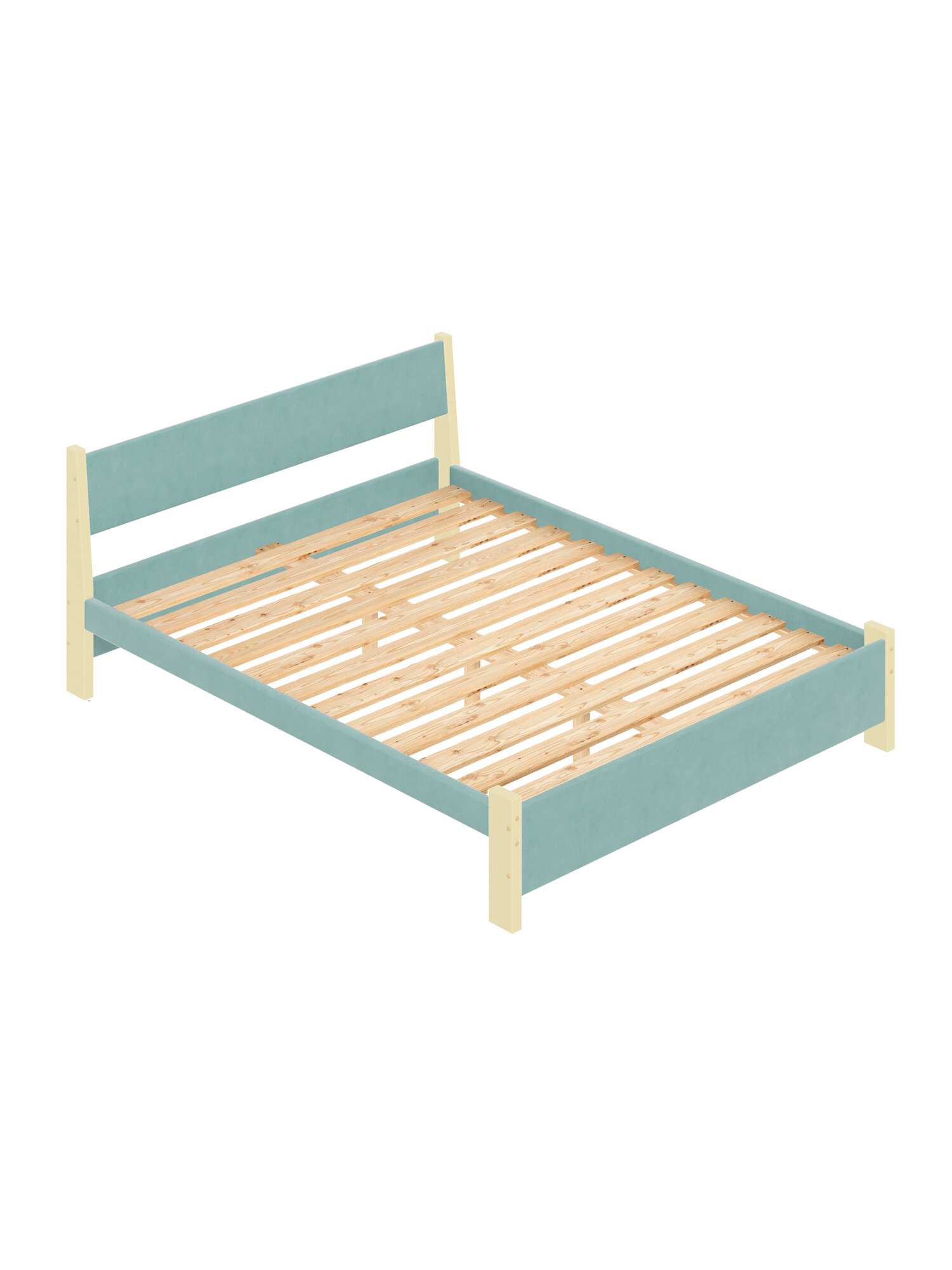 Кровать двуспальная Мишка из массива сосны, 120х200 см, с реечным основанием и мягкой обивкой цвета Тиффани, цвет ножек ольха 18 632 ₽
