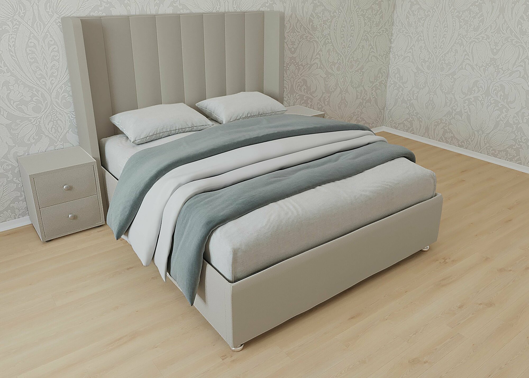 Двуспальная кровать Женева 160x200 с подъемным механизмом и с коробом для белья велюр бежевый ножки 13 см хром 40 000 ₽