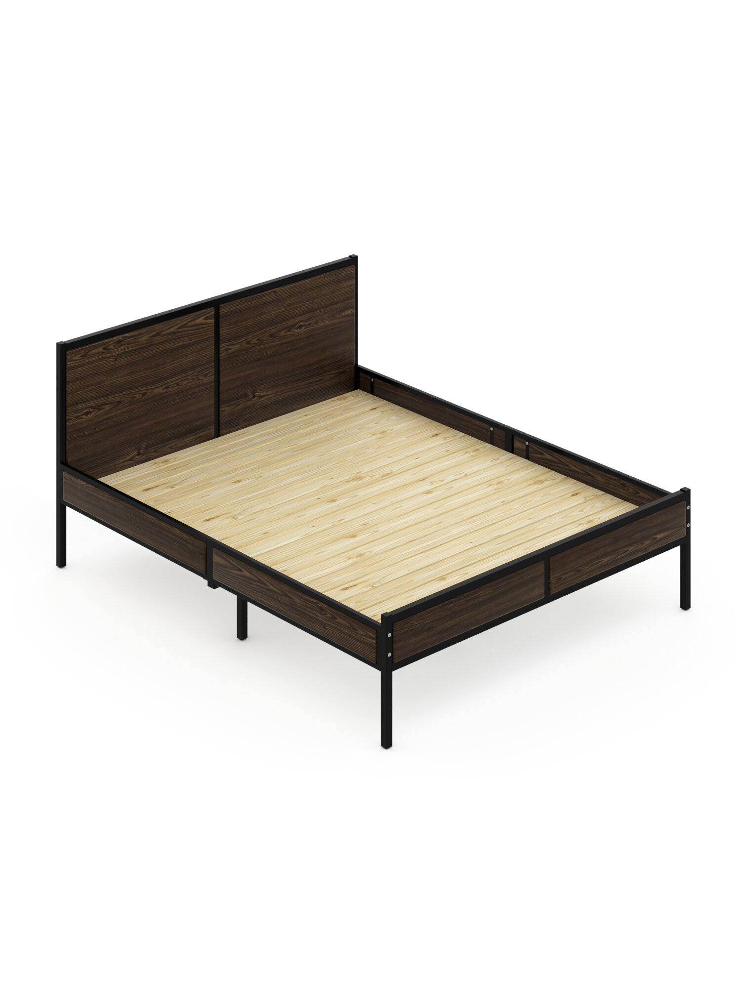 Кровать двуспальная Лофт со сплошным основанием, цвет темного дуба с черным металлическим каркасом, 140х200 см 23 980 ₽