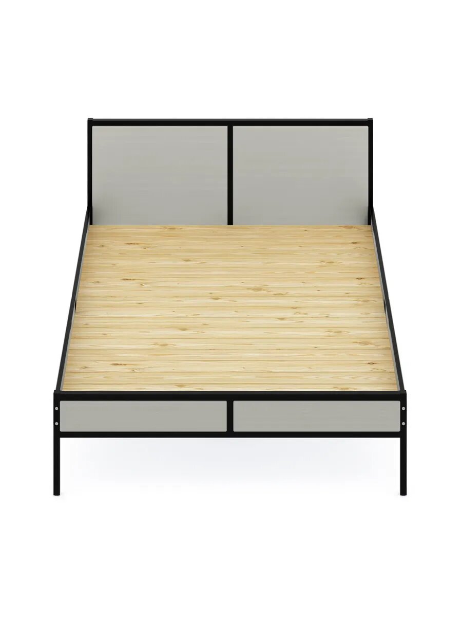 Кровать двуспальная Лофт со сплошным основанием, без покраски с черным металлическим каркасом, 120х200 см 21 098 ₽