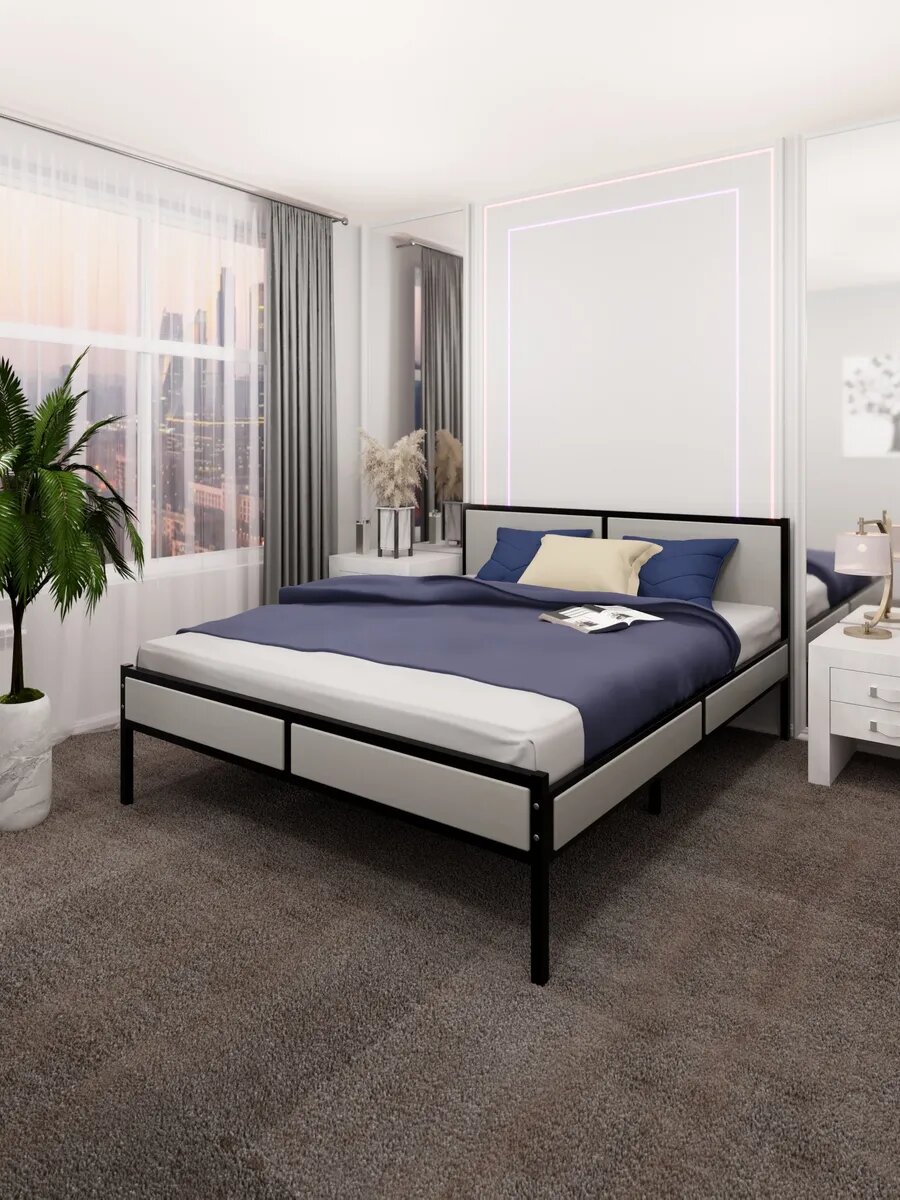 Отзывы на Кровать двуспальная Лофт со сплошным основанием, цвет платины с черным металлическим каркасом, 140х200 см