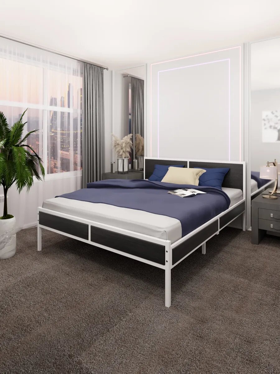 Отзывы на Кровать двуспальная Лофт со сплошным основанием, цвет черного оникса с белым металлическим каркасом, 160х200 см