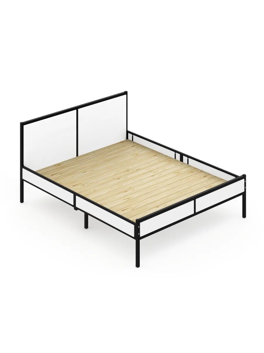 10 цен на Кровать двуспальная Лофт со сплошным основанием, цвет белый с черным металлическим каркасом, 140х200 см