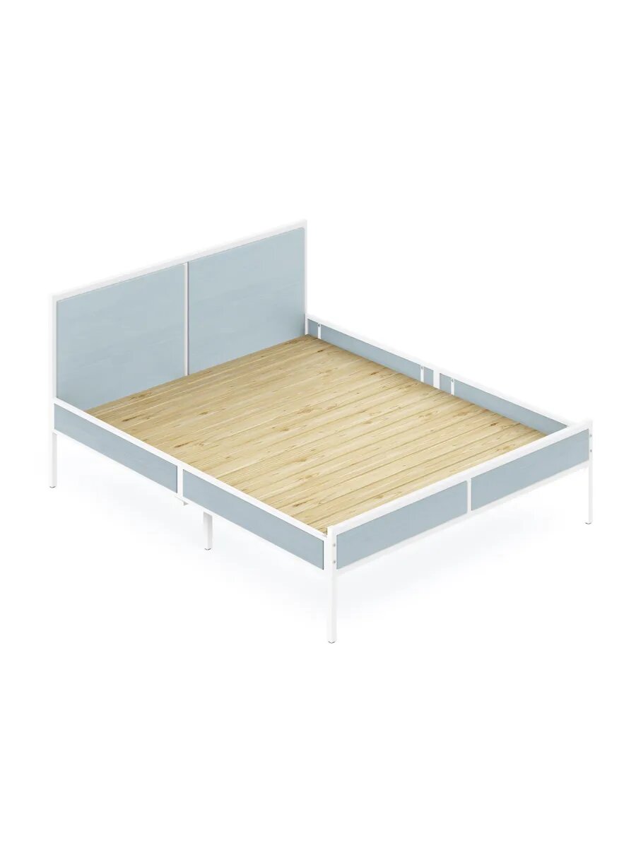 Кровать двуспальная Лофт со сплошным основанием, цвет голубой с белым металлическим каркасом, 140х200 см информация: