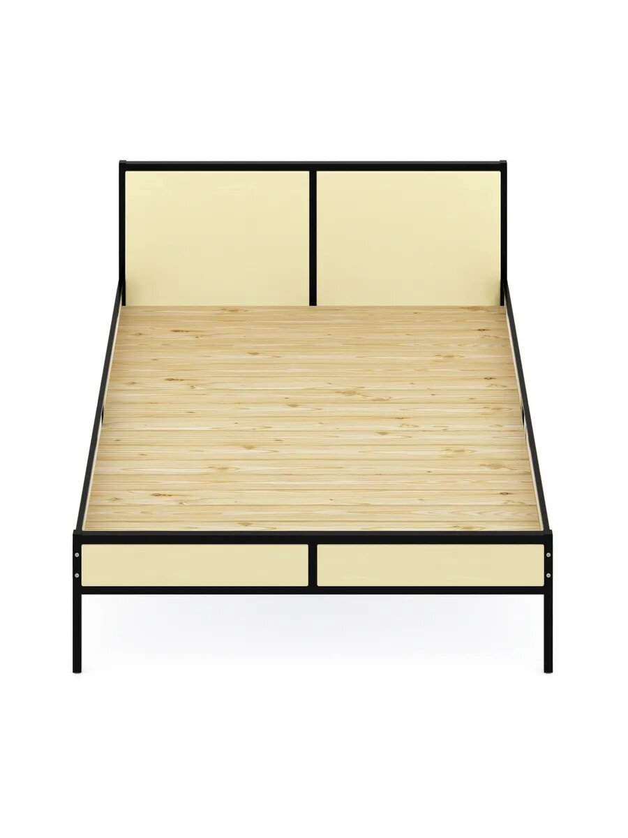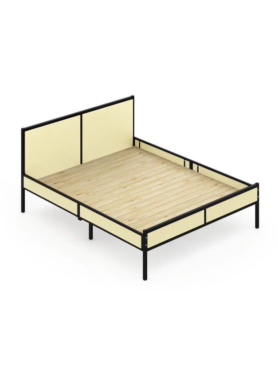 Кровать двуспальная Лофт со сплошным основанием, цвет ванили с черным металлическим каркасом, 120х200 см 23 098 ₽