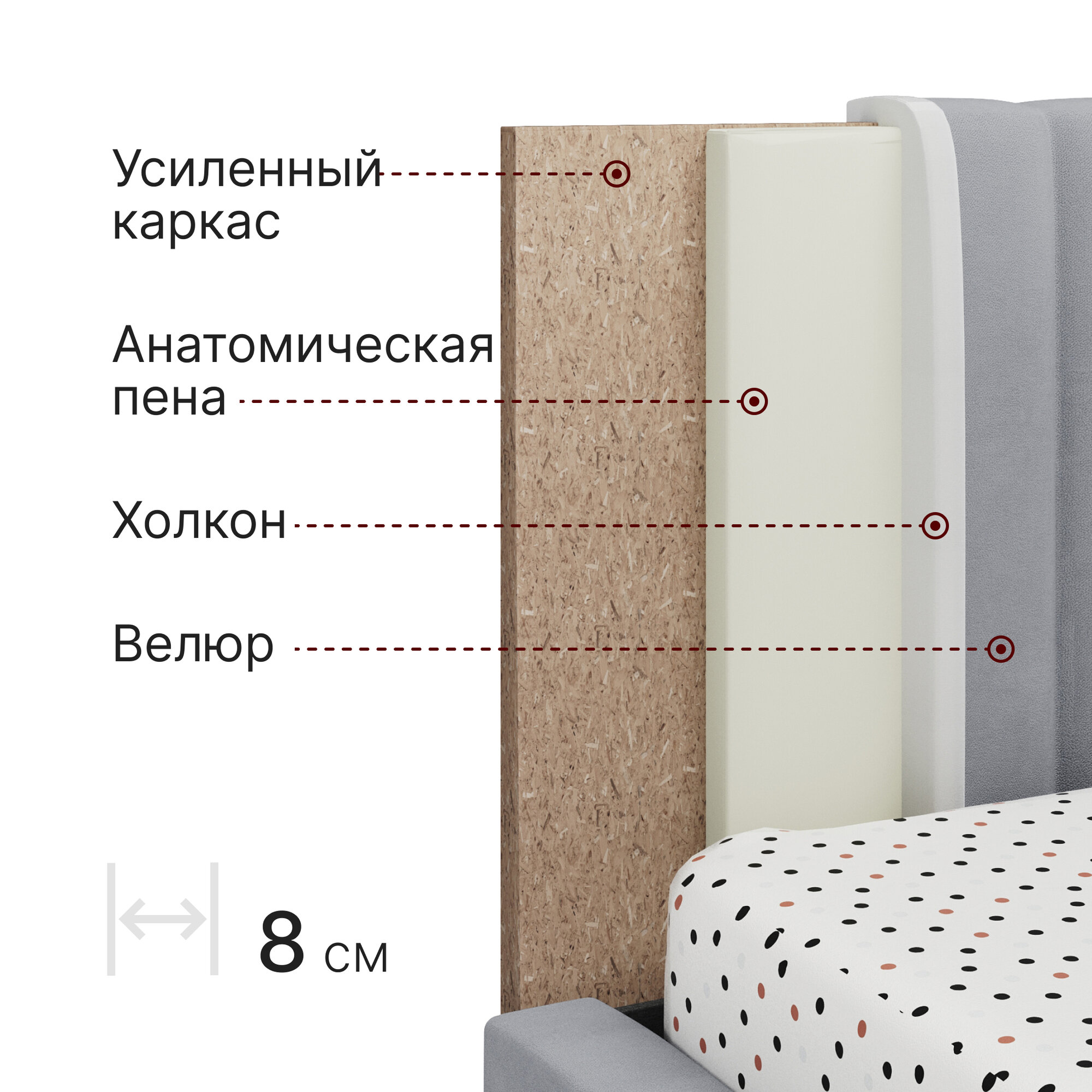 Кровать 90х200 c подъемным механизмом и ящиком для белья Mia, велюр, светло-серый информация: