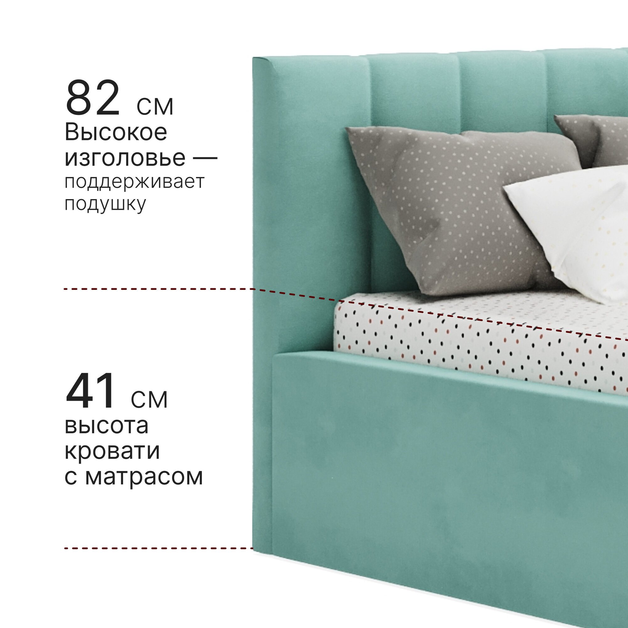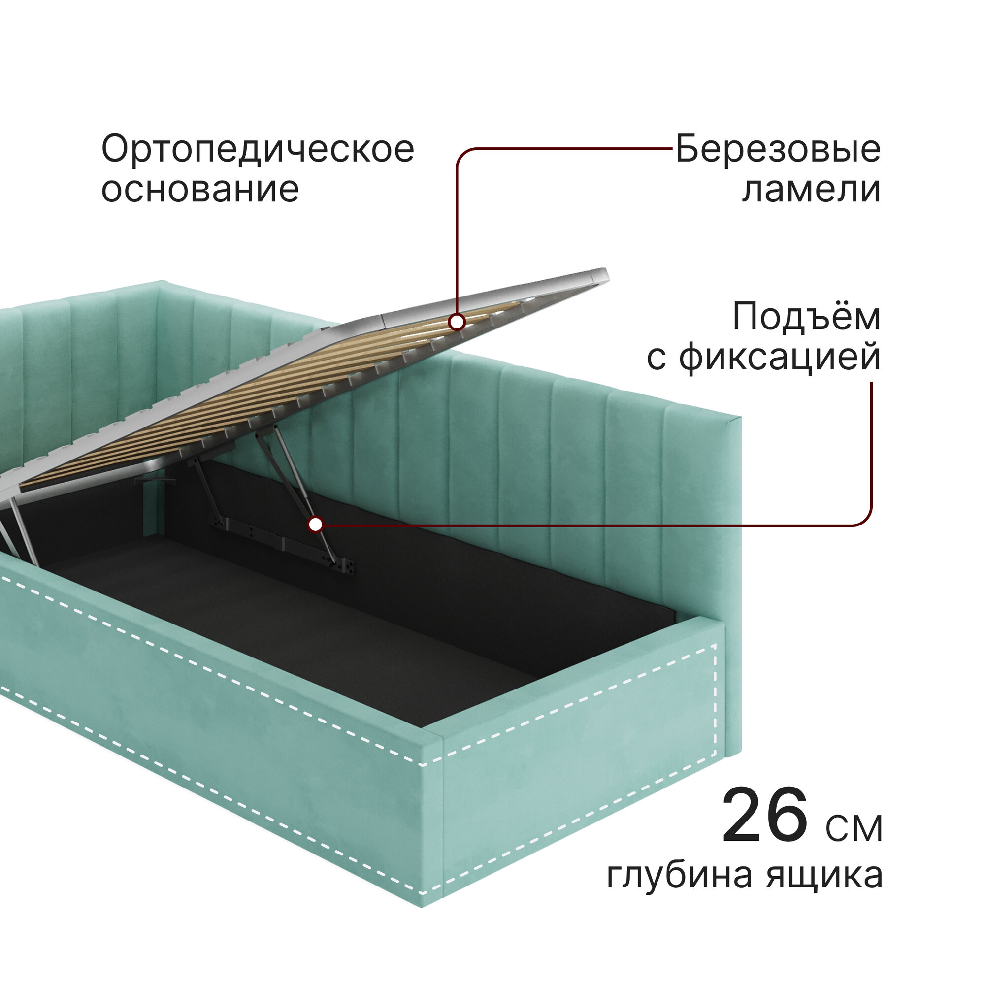 Кровать 90х200 c подъемным механизмом и ящиком для белья Mia, велюр, мятный информация: