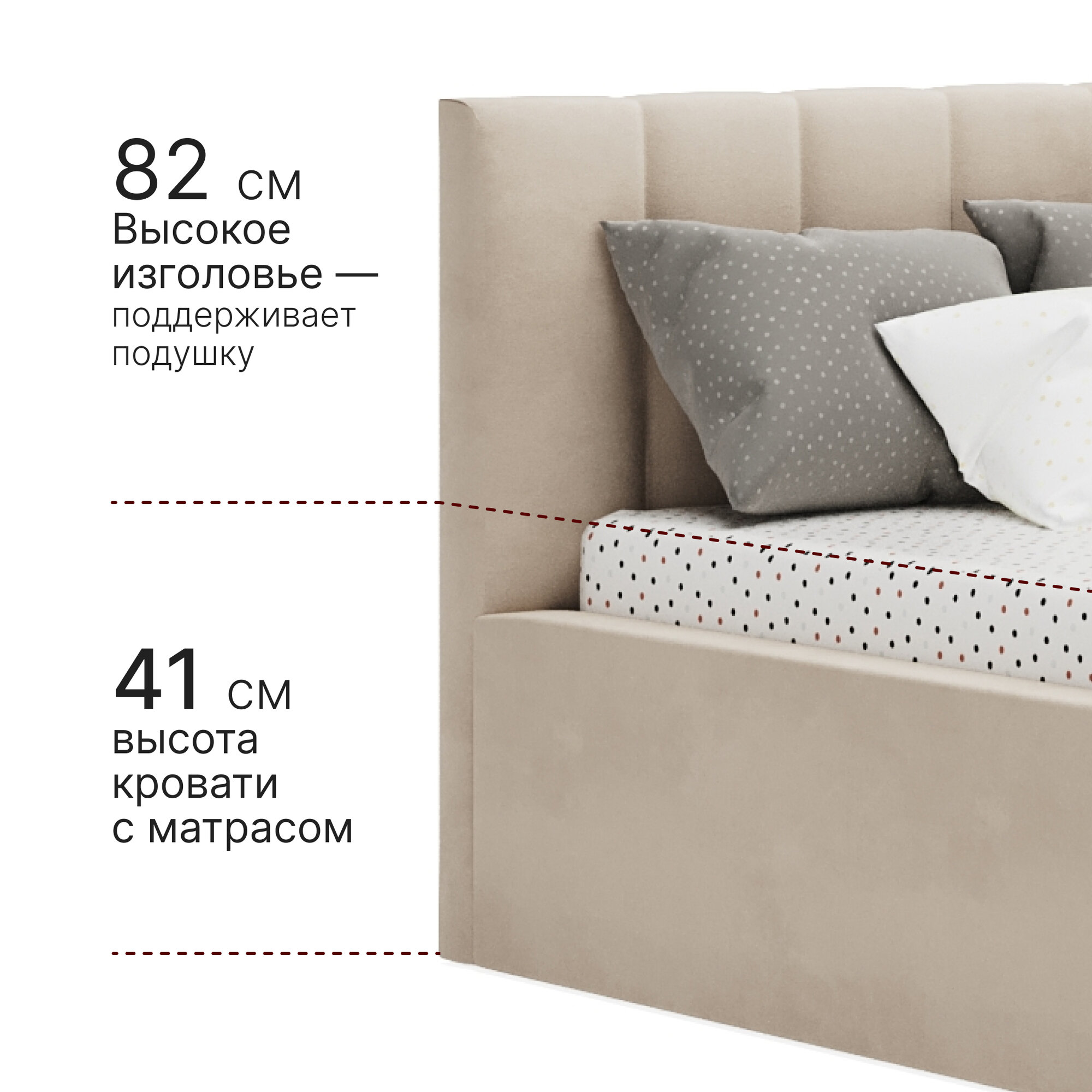 Отзывы на Кровать 90х200 c подъемным механизмом и ящиком для белья Mia, велюр, бежевый