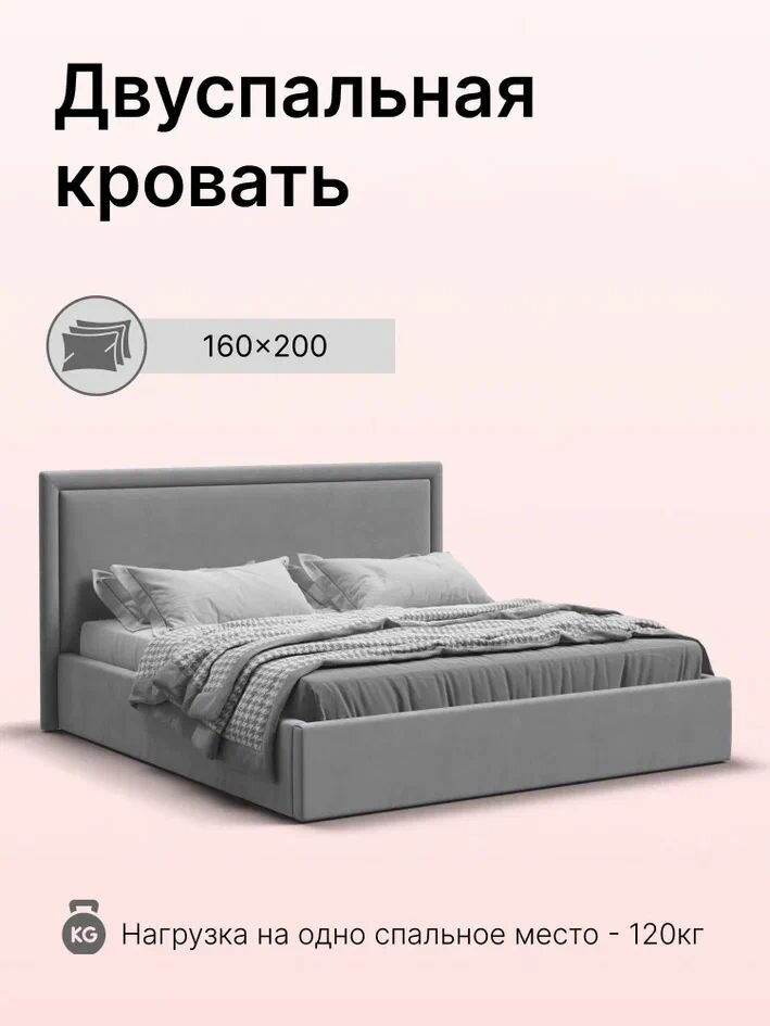 Отзывы на Двуспальная кровать Фрея без подъемного механизма, велюр, цвет MONOLIT сталь, 160х200 см
