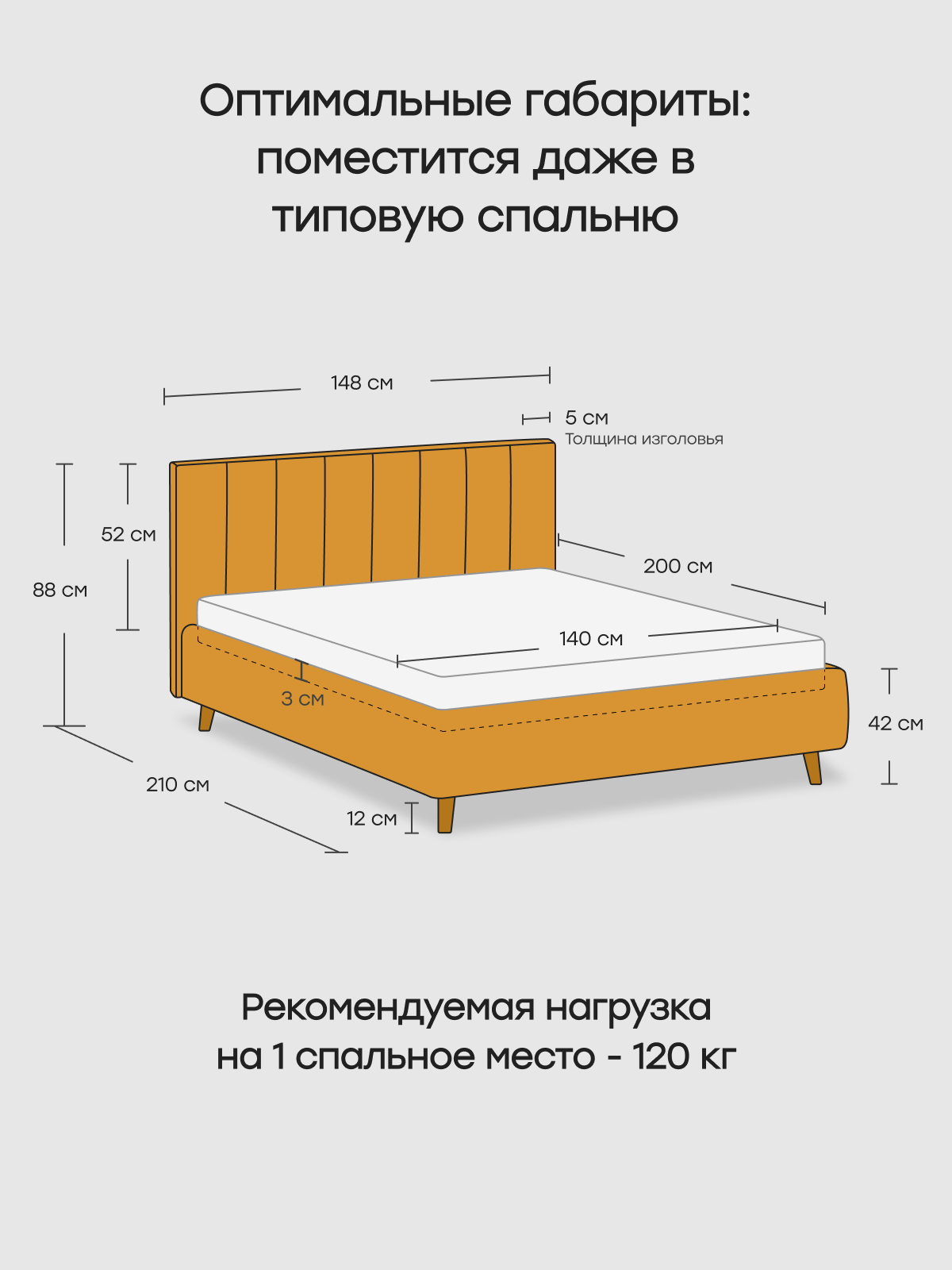 Кровать Hakkuna Matata "Dacota16", подъёмный механизм, 160x200х88 см, с изголовьем, горчица 33 003 ₽
