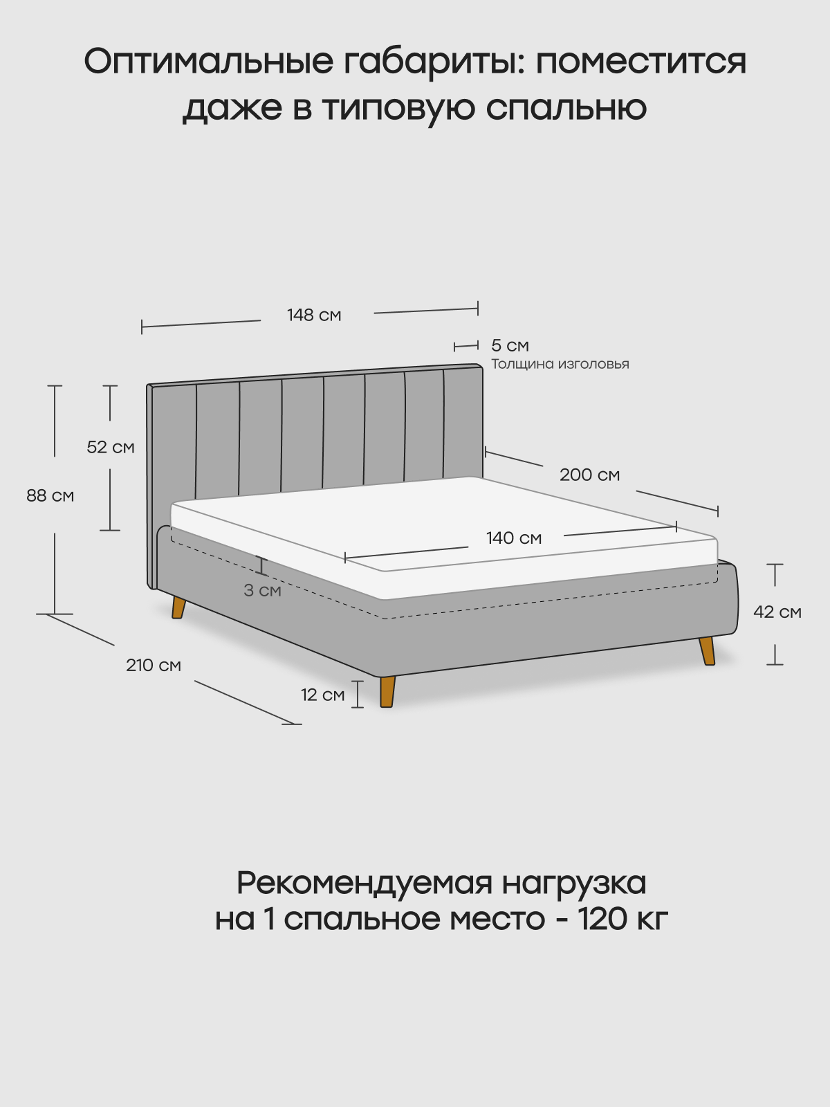 Кровать Hakkuna Matata Dacota23, 120x200х88 см, серая, с подъемным механизмом 31 392 ₽