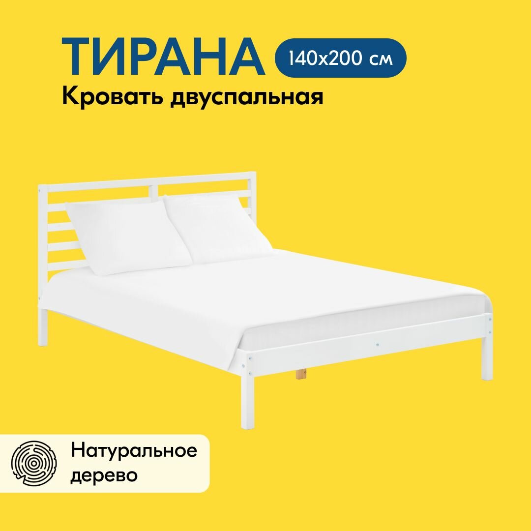 Кровать ТИРАНА двуспальная 140x200, ортопедическое основание, натуральный 13 990 ₽