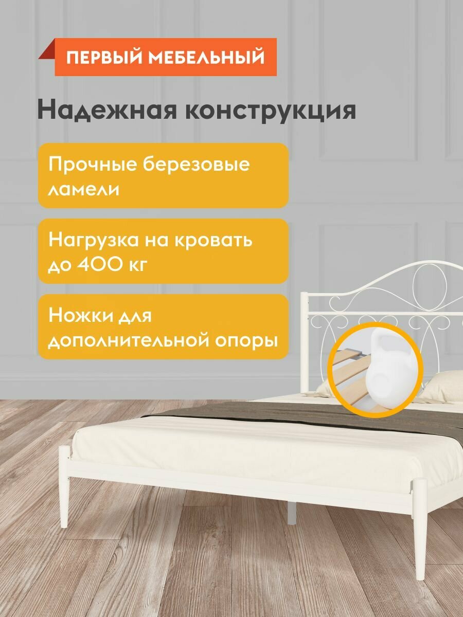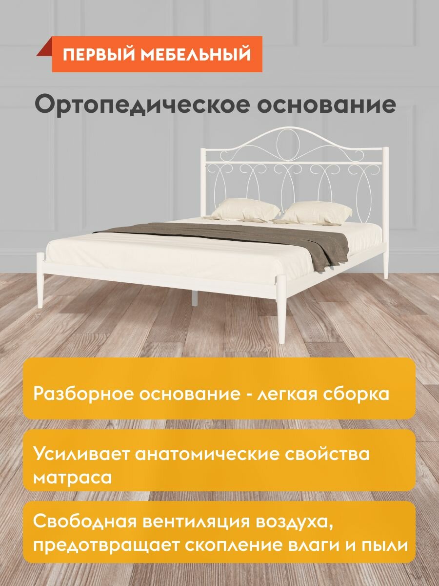 Кровать двуспальная Лекси 160х200 см, с анатомическим основанием, без подъемного механизма, без изножья, Кремово-белый, металл информация: