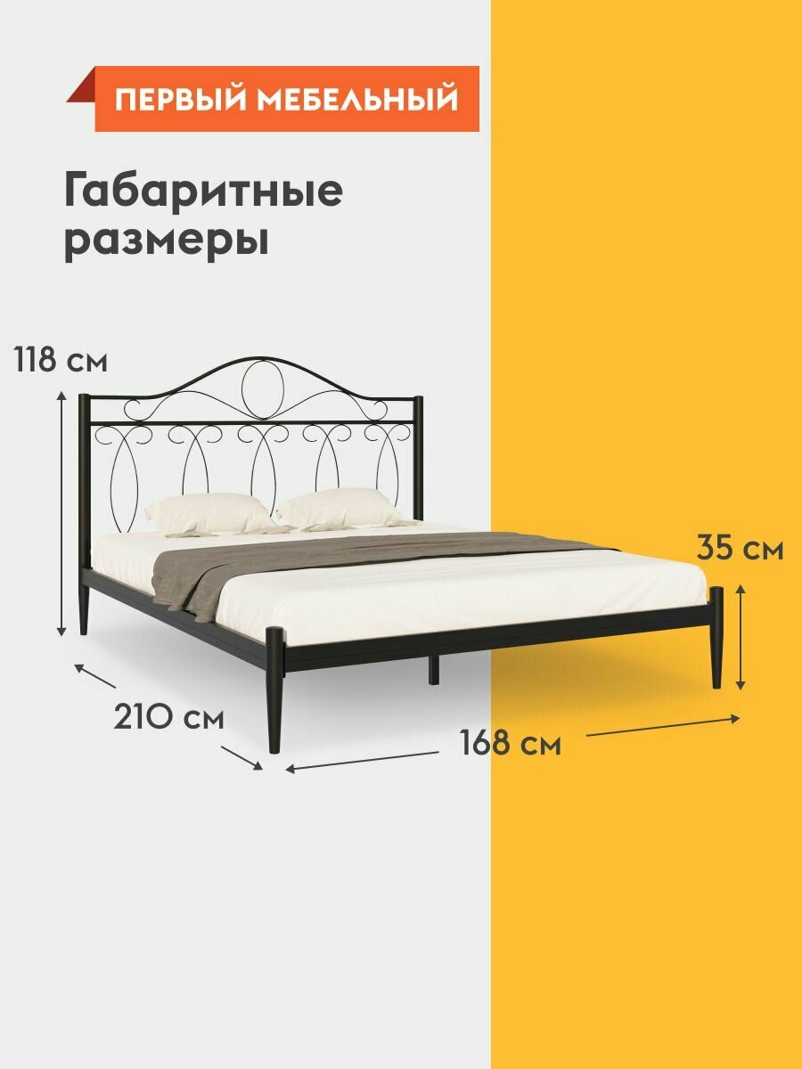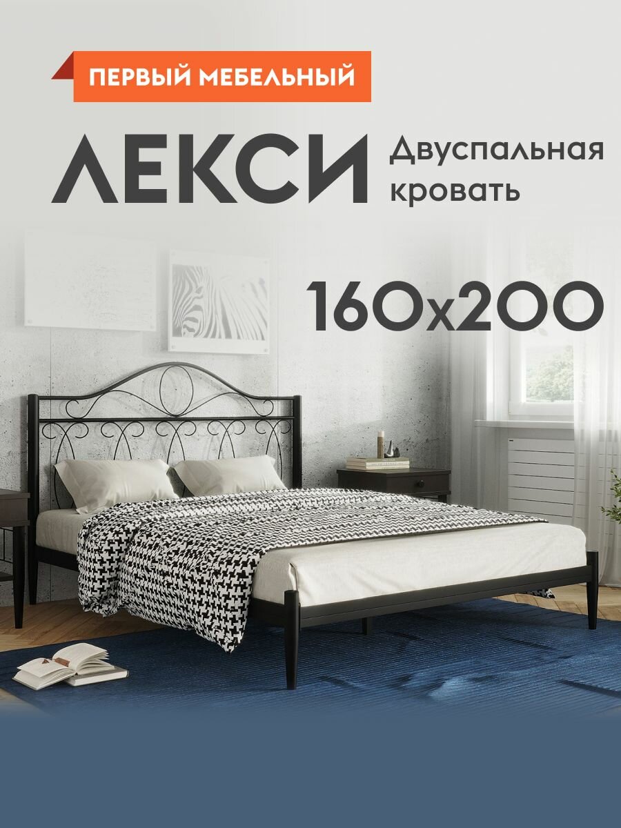 Кровать двуспальная Лекси 160х200 см, с анатомическим основанием, без подъемного механизма, без изножья, Черный, металл информация: