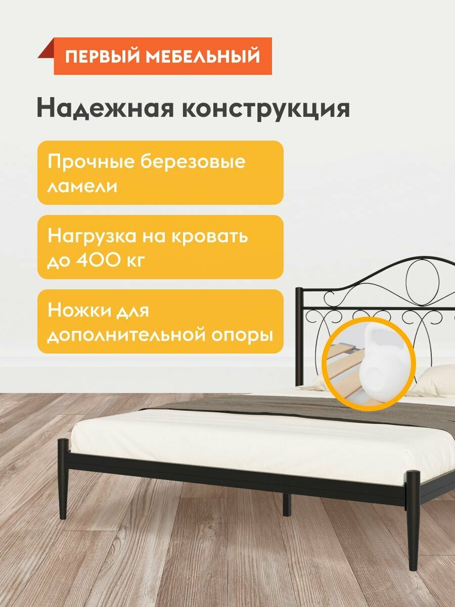 Отзывы на Кровать двуспальная Лекси 160х200 см, с анатомическим основанием, без подъемного механизма, без изножья, Черный, металл