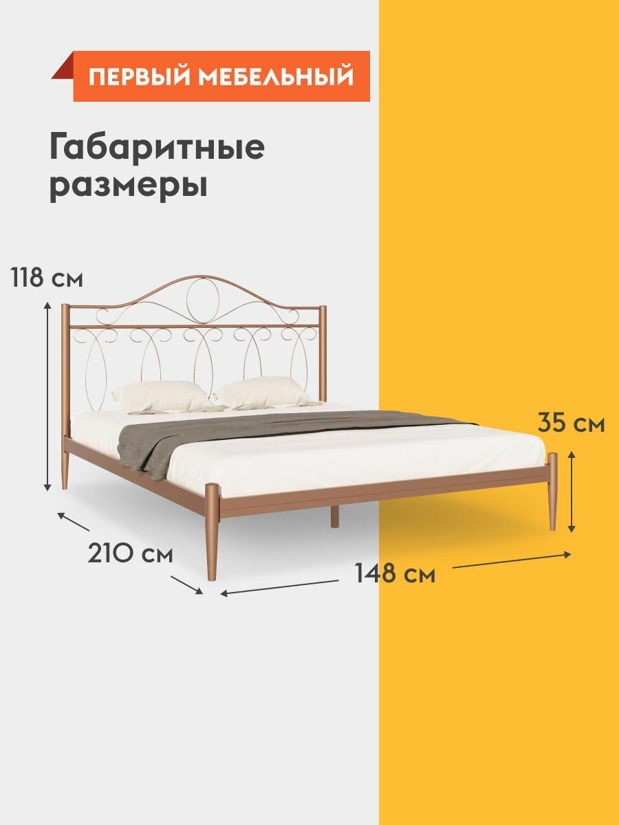 Кровать двуспальная Лекси 140х200 см, с анатомическим основанием, без подъемного механизма, Бронза металл информация: