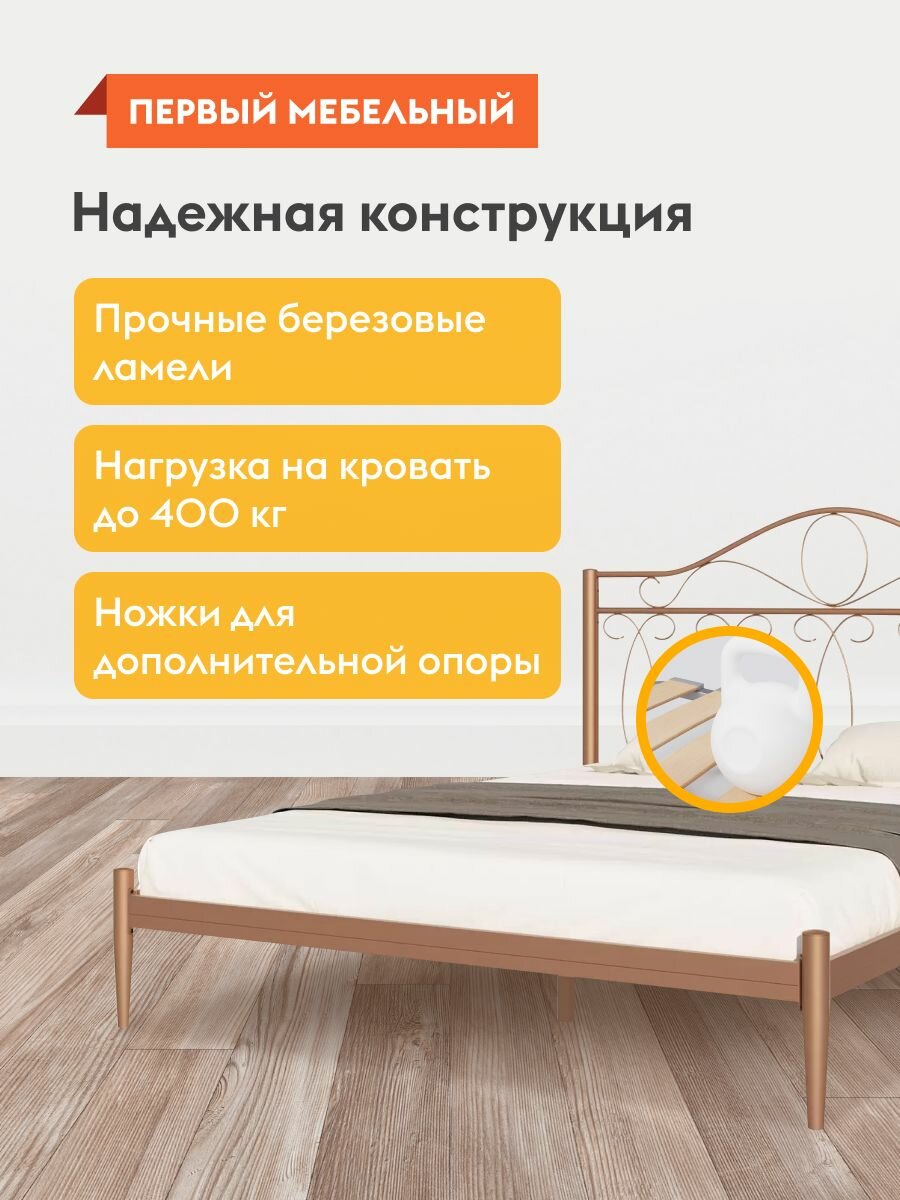 Отзывы на Кровать двуспальная Лекси 140х200 см, с анатомическим основанием, без подъемного механизма, Бронза металл