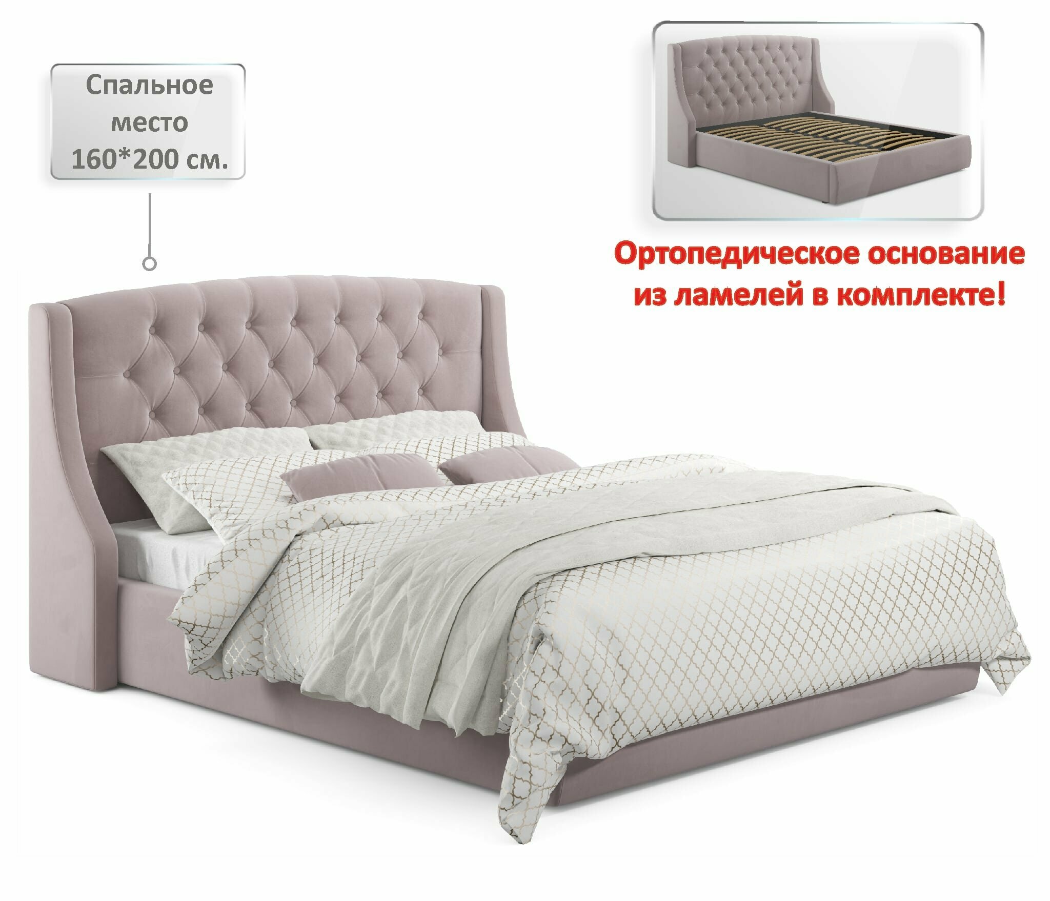 Двуспальная кровать Stefani 1600 лиловая Zeppelin с ортопедическим основанием, 160х200, мягкая из велюра, ламели информация: